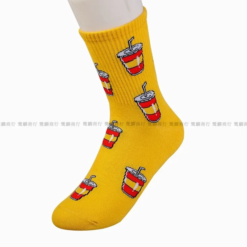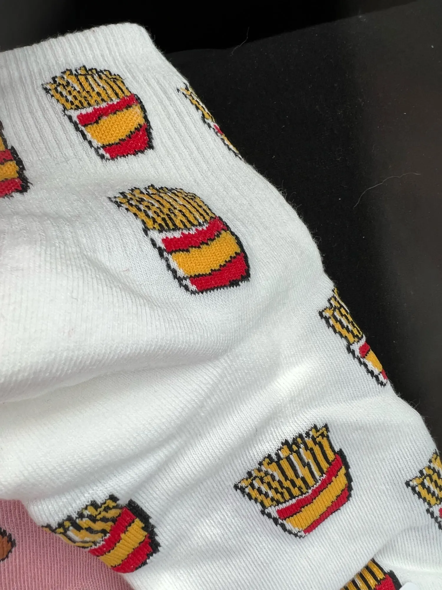 Носки женские хлопковые, с рисунком пиццы, картофеля фри