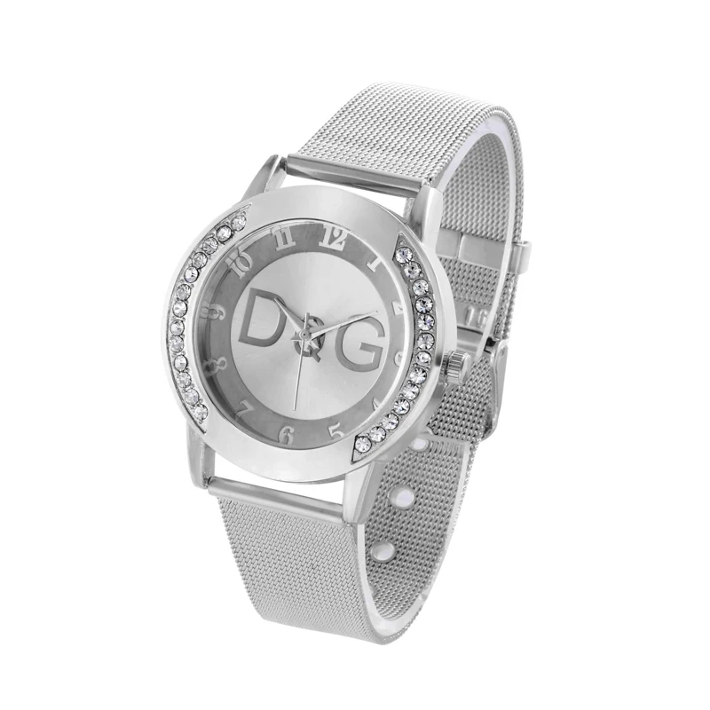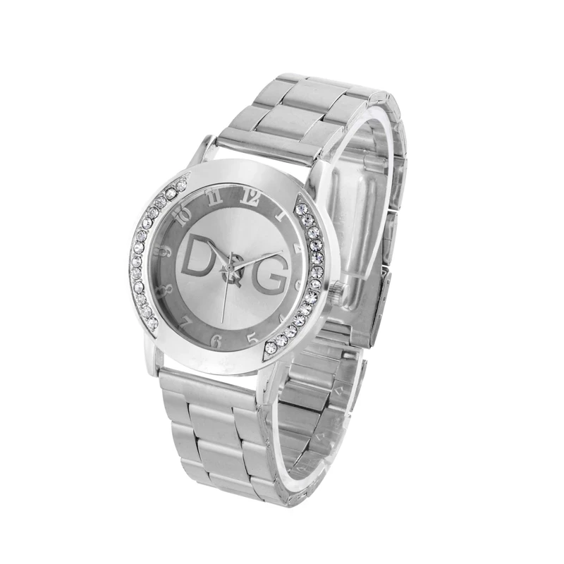 Часы женские кварцевые с кристаллами, из нержавеющей стали