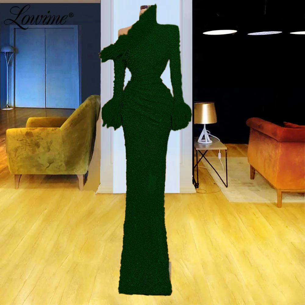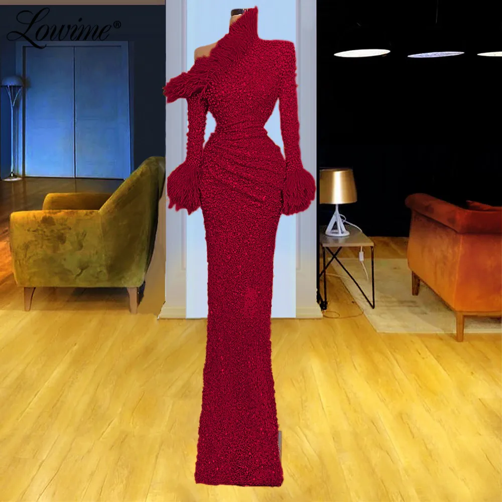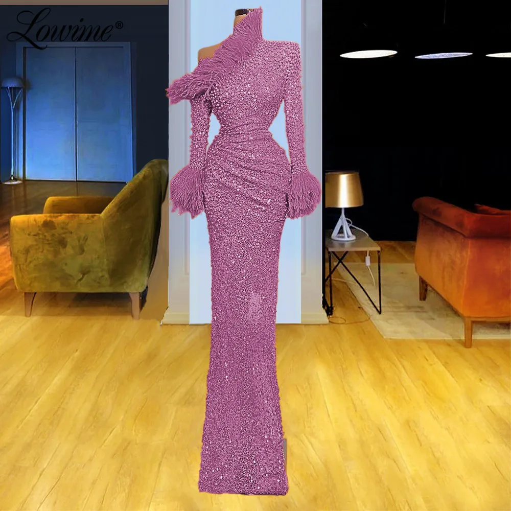 Вечернее платье с перьями, длинными рукавами, украшенное бисером, в арабском стиле, для выпускного вечера, в дубайском стиле, 2021
