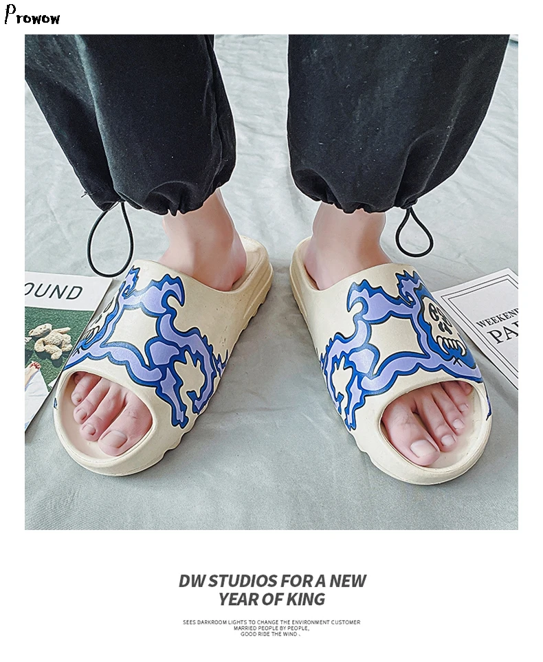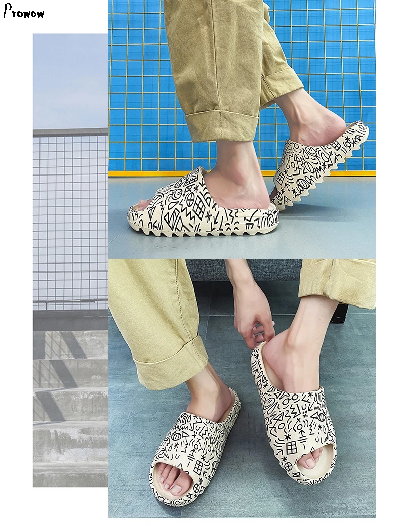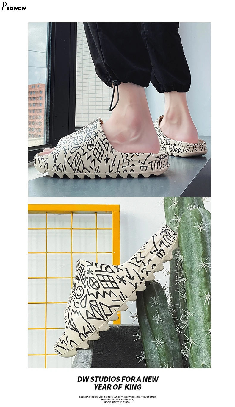Мужские шлепанцы с граффити, черные шлепанцы на платформе с мультяшным рисунком, для улицы, пляжные тапочки, мягкая подошва, для комнаты, 2022