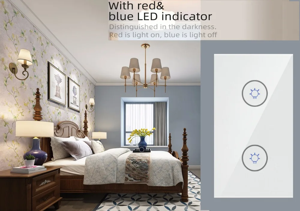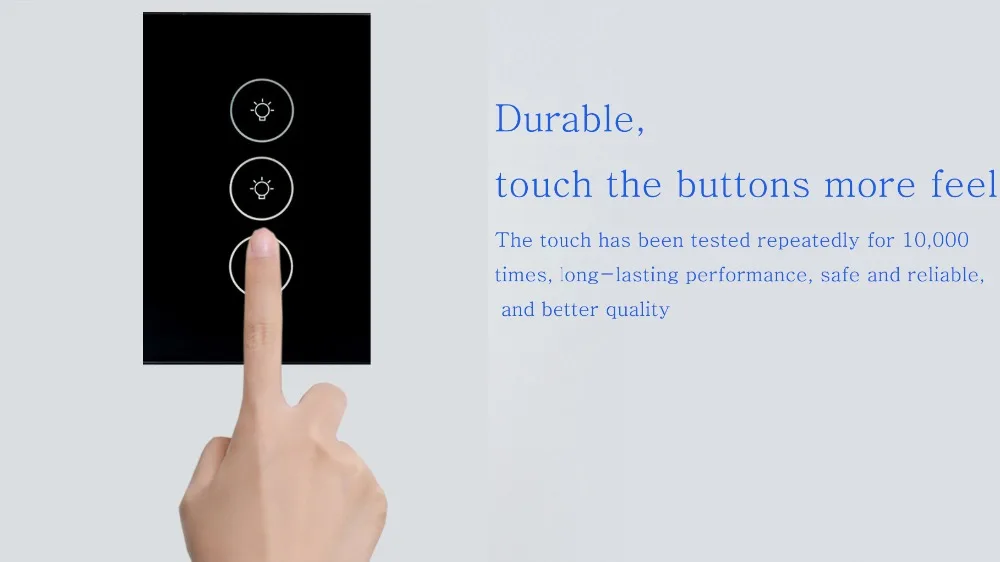 Управление сенсорным экраном из закаленного стекла этим умным переключателем обеспечивает очень чувствительное сенсорное управление