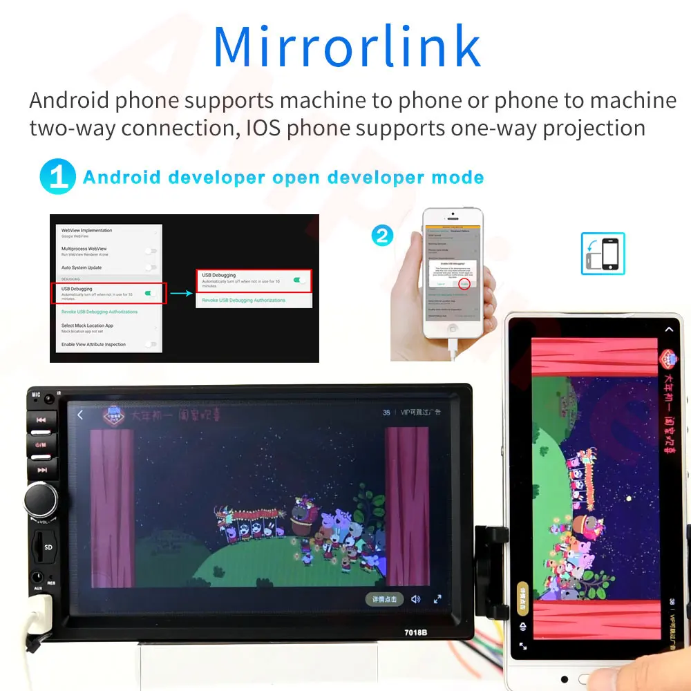 7023B 7 дюймов Автомобильный 2DIN сенсорный экран Авто Радио Видео Аудио MP4 MP5 плеер 1080P HD TFT Bluetooth FM/USB/AUX