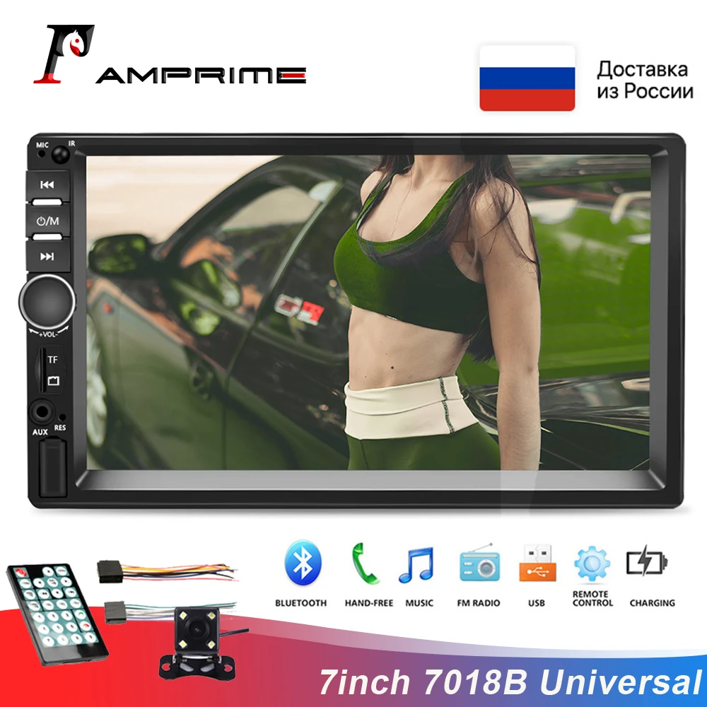 Автомагнитола AMPrime 2020 с сенсорным экраном 7 дюймов, мультимедийный плеер с камерой заднего вида, MP5, Bluetooth, USB, FM, AM, типоразмер 2 Din