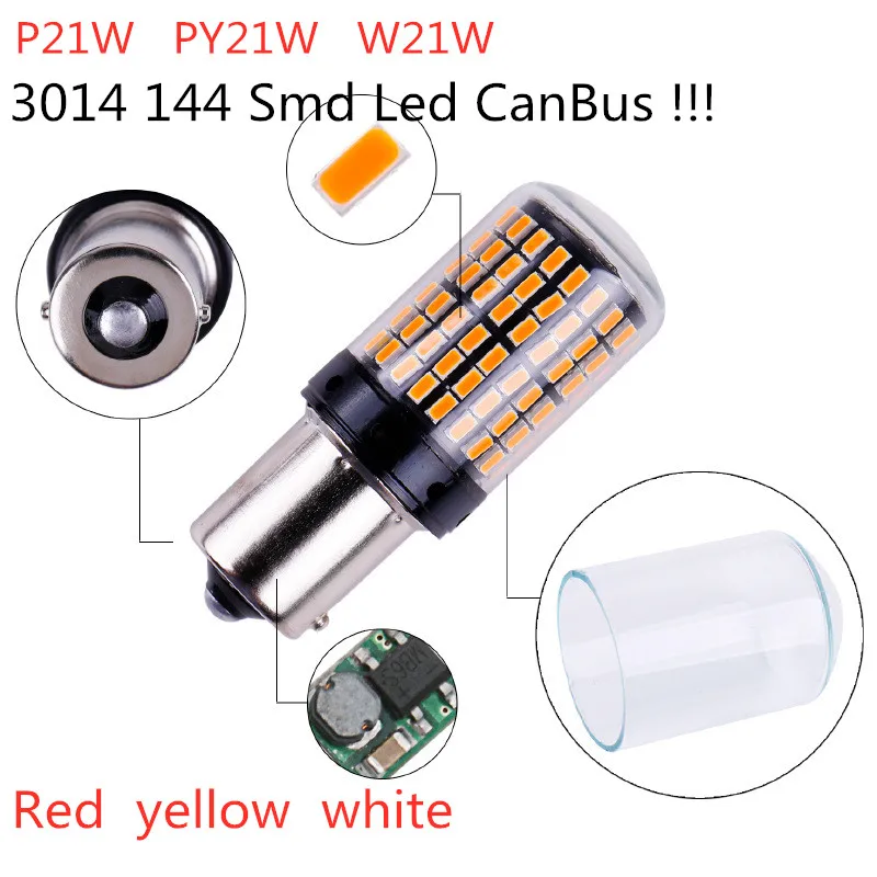 Тосветильник лампы T20 7440 W21W, светодиодные лампы 3014 144 Smd, CanBus, без ошибок, P21YW 1156 BA15S P21W