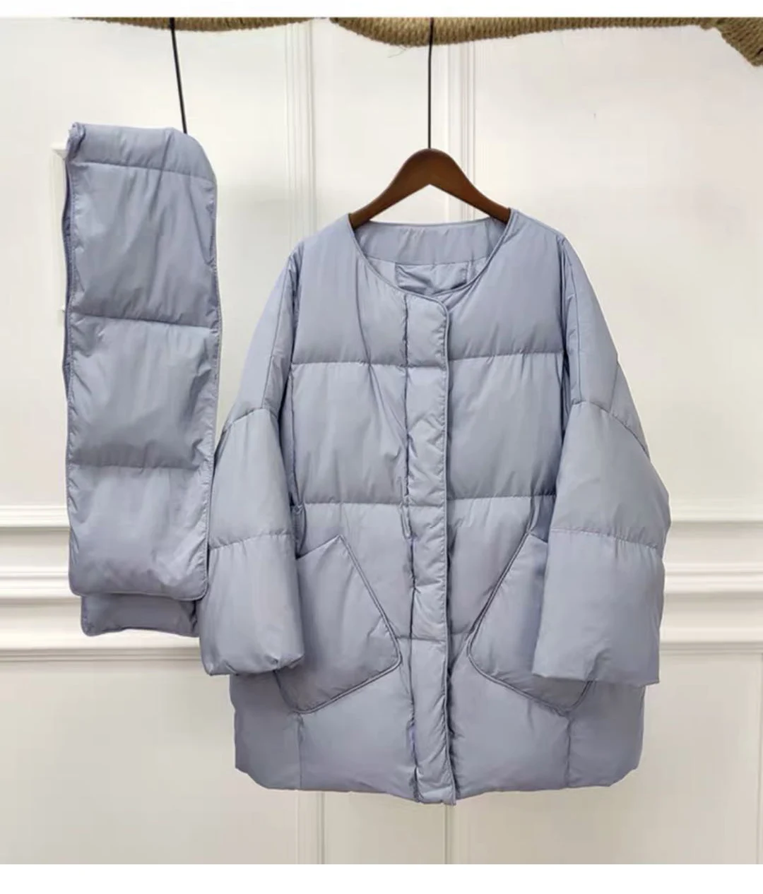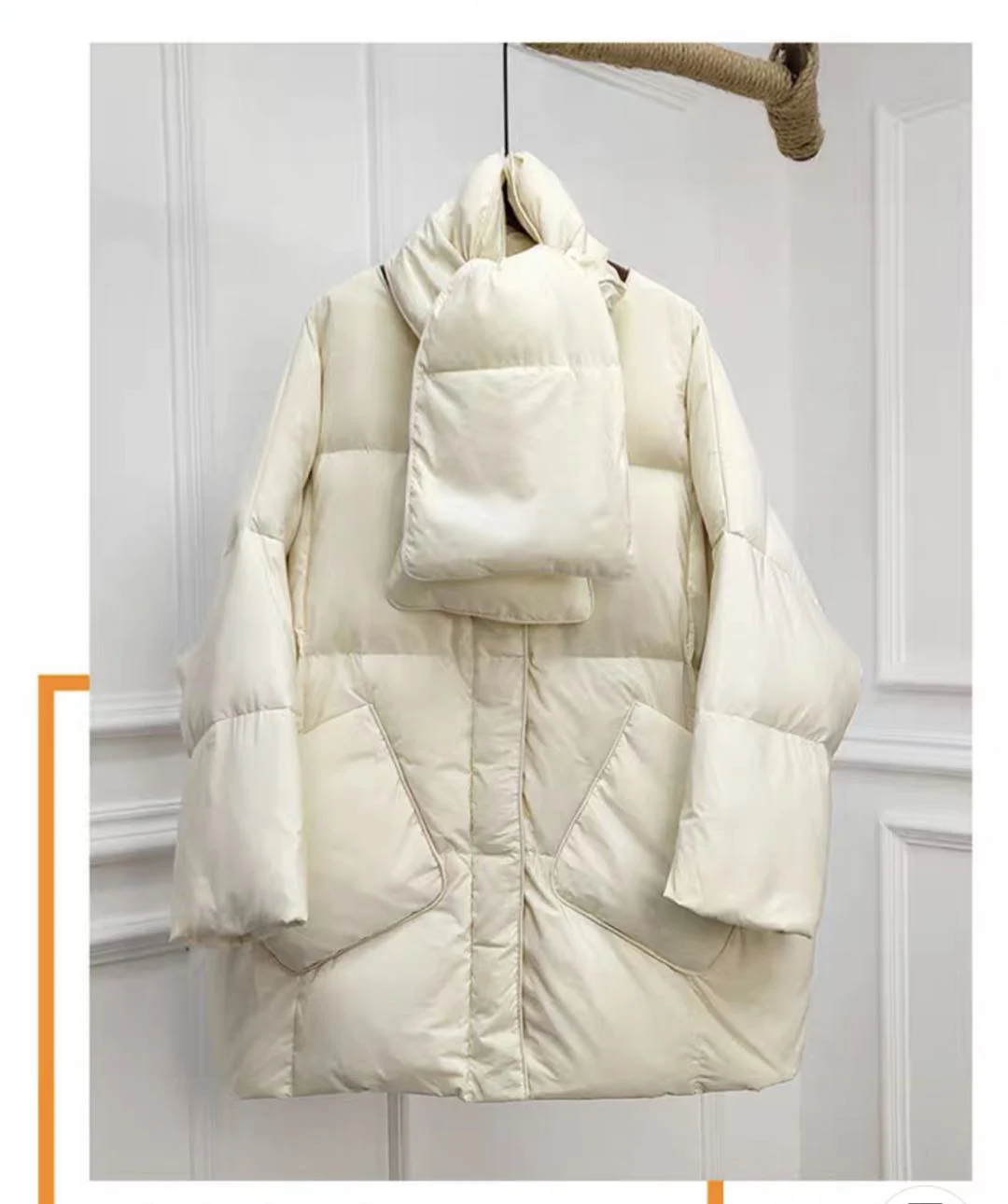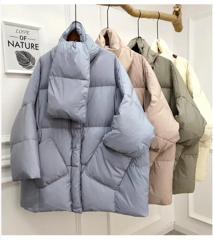 Женский пуховик на утином пуху, утепленная Короткая Повседневная куртка большого размера с шарфом, модель ED1284 на осень-зиму