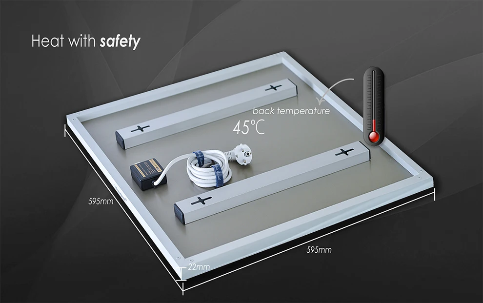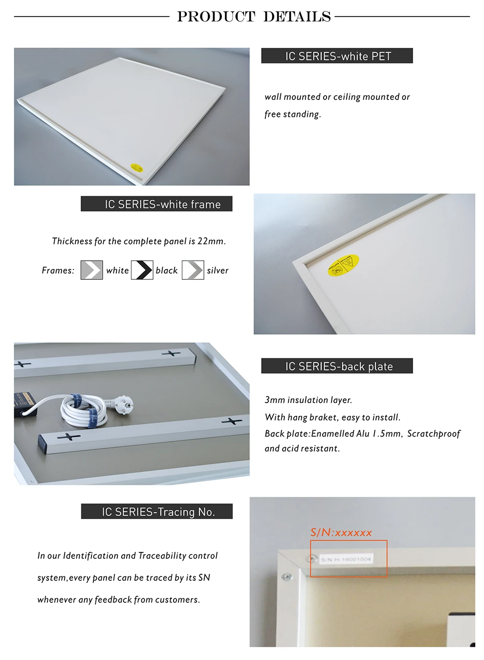 IC360W ватт 595x595 мм пульт дистанционного управления Панель инфракрасного нагрева белая ПЭТ поверхность алюминиевая задняя панель из углеродного кристалла нагревательная панель
