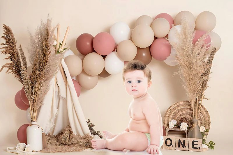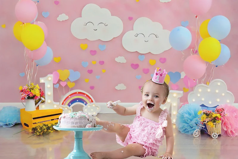 Фон для 1-го дня рождения торт разбивать девочку мальчик розовый синий воздушный шар палатка цветок Новорожденный ребенок интерьер детской комнаты