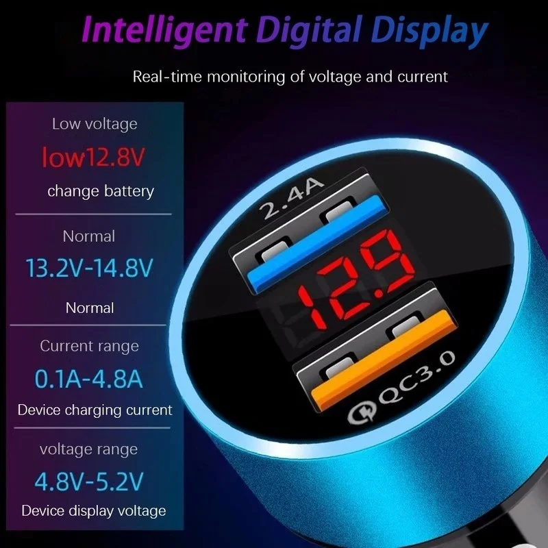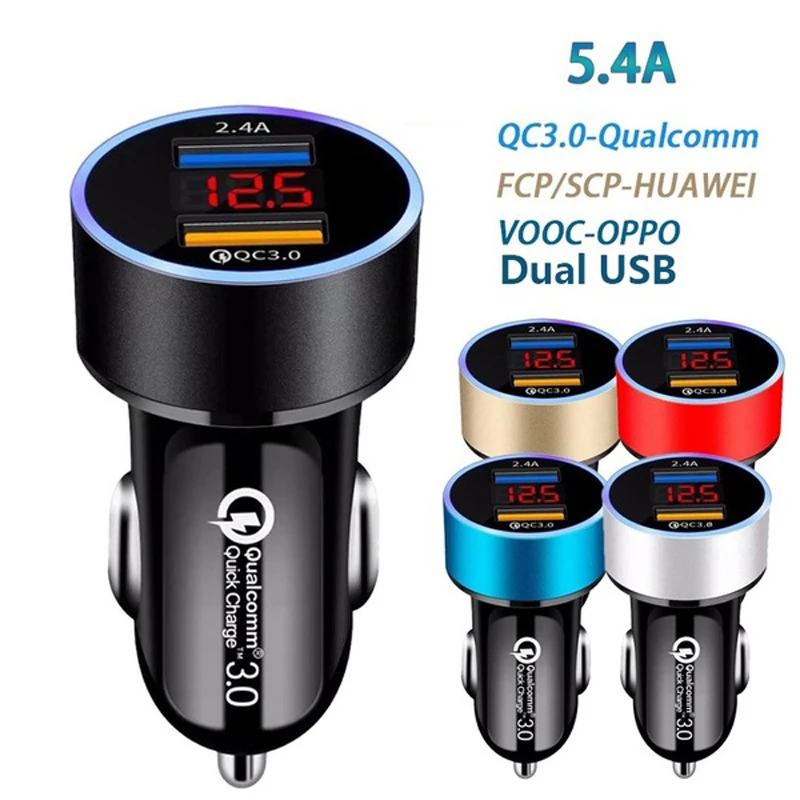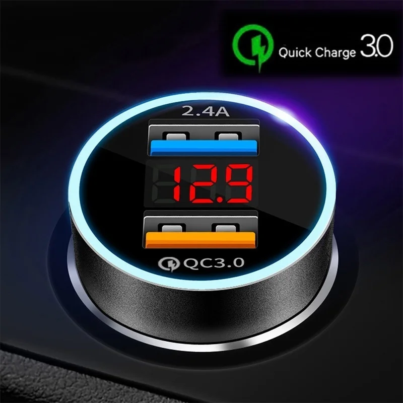 Автомобильное зарядное устройство с двумя USB-портами и ЖК-дисплеем, 3,0 дюйма