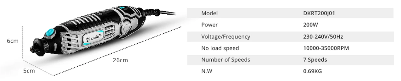 Электрическая дрель DEKO DKRT200J01, мини-шлифовальный станок с переменной скоростью 220 В для шлифовки, резки, резьбы по дереву, шлифовки