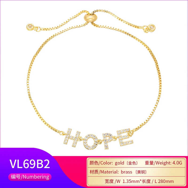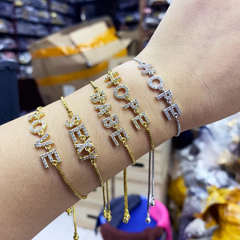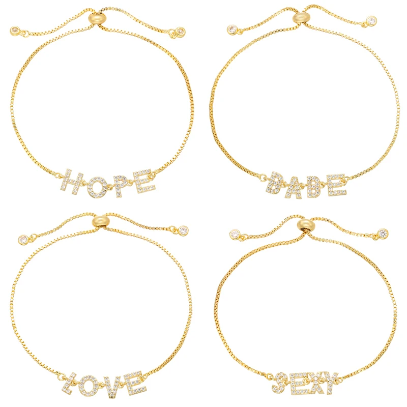 Женский браслет ZHUKOU, с кристаллами из фианита, золотогосеребряного цвета, ювелирные изделия с маленькими буквами, подвески, крошечный браслет для пары, подарок на день рождения VL69