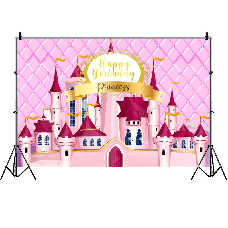 Фон для фотосъемки с изображением замка принцессы розового цвета дл...