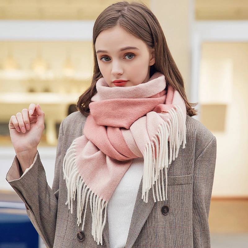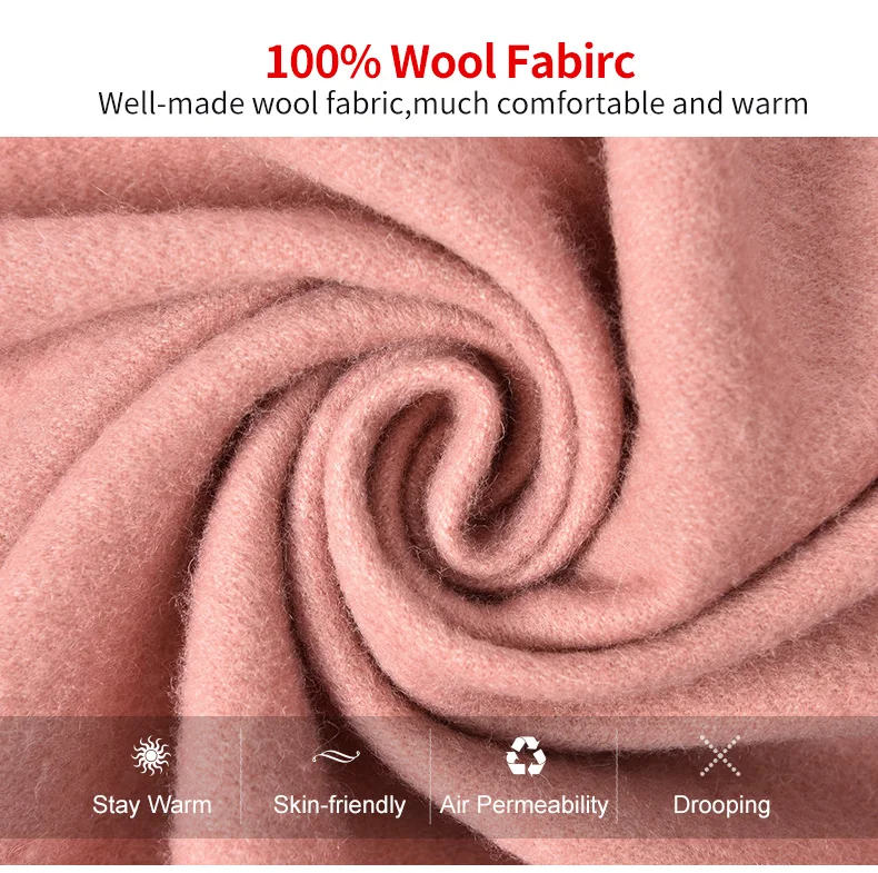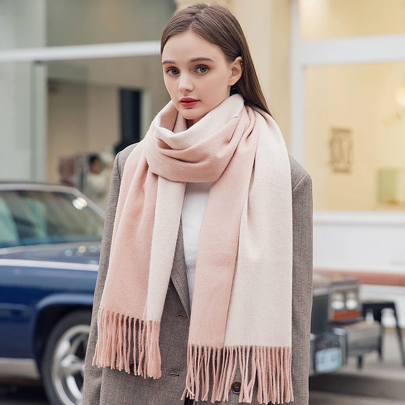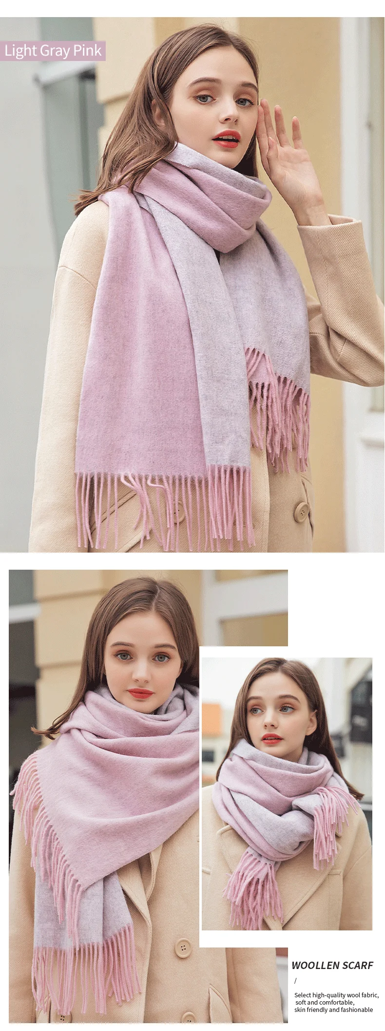 Зимний шарф из 100% шерсти для женщин, розовые шали и обертывания, теплые кашемировые шерстяные шарфы, женский шарф с кисточками, женский шарф