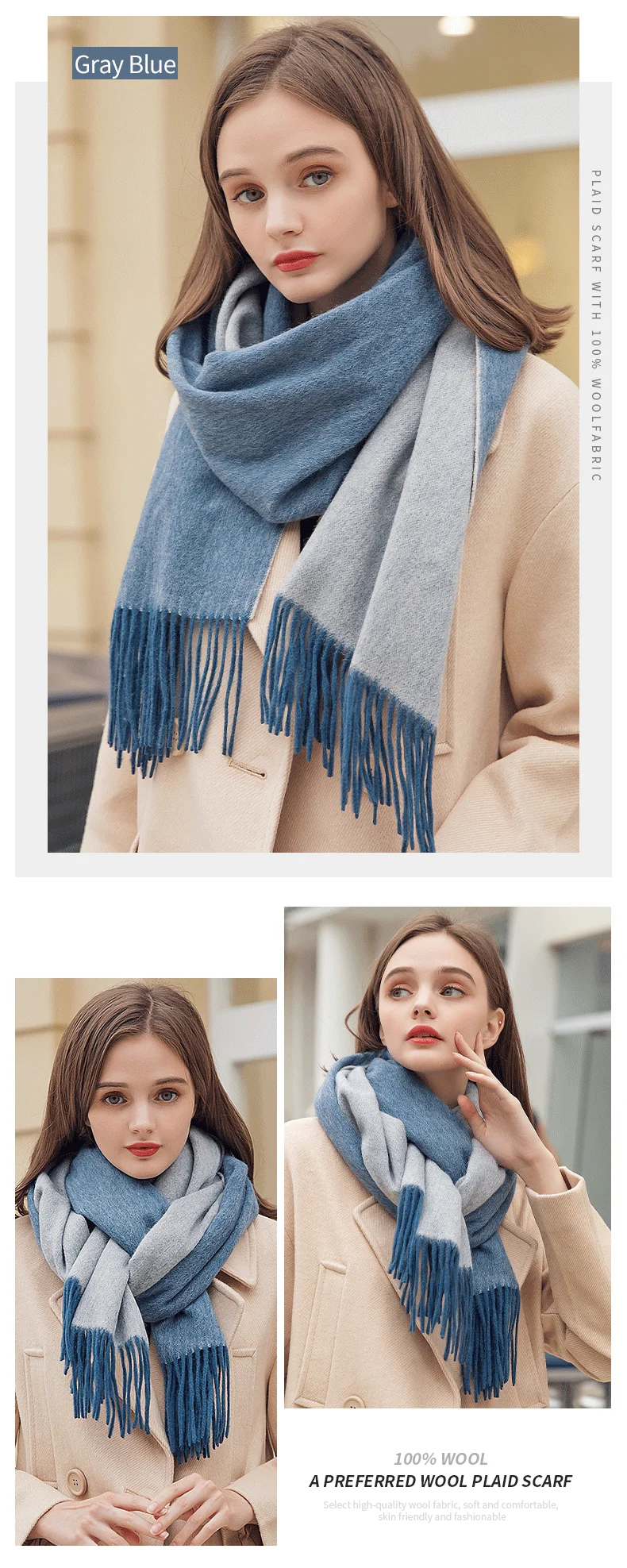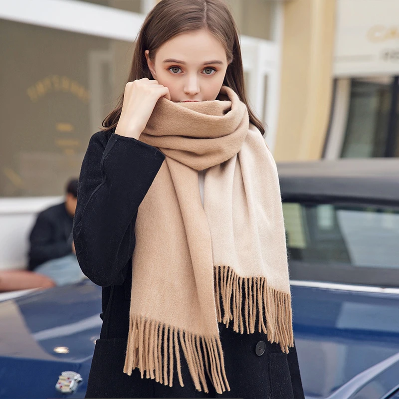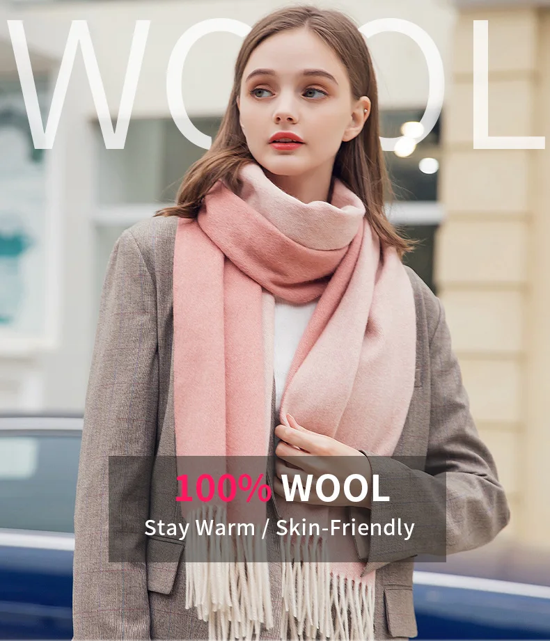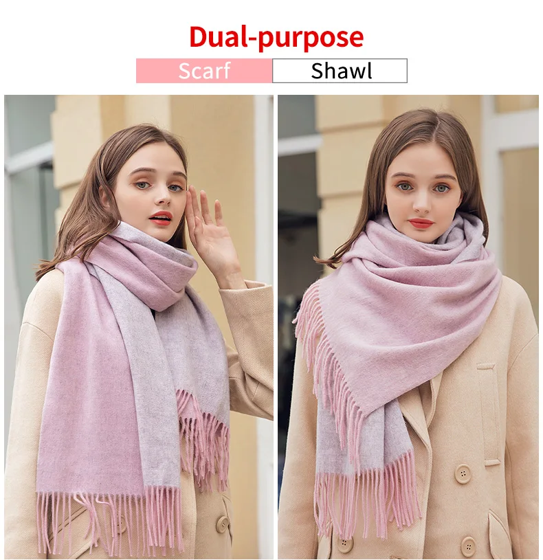 Зимний шарф из 100% шерсти для женщин, розовые шали и обертывания, теплые кашемировые шерстяные шарфы, женский шарф с кисточками, женский шарф
