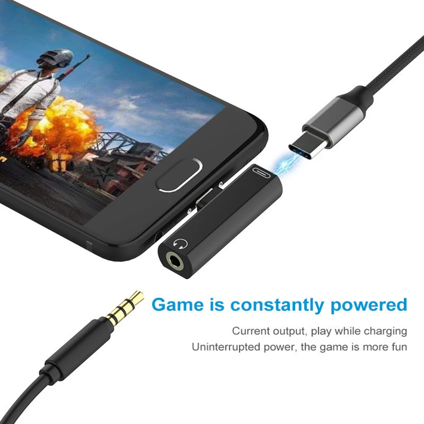 2 в 1 Функция дизайн: Зарядка во время прослушивания музыки, Тип с разъемами типа C и 3,5 мм для наушников адаптер с Тип-C зарядки