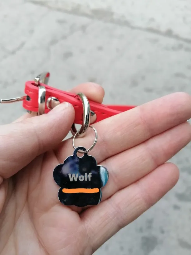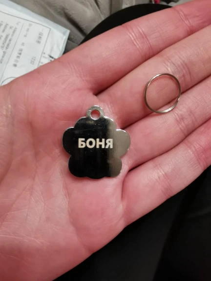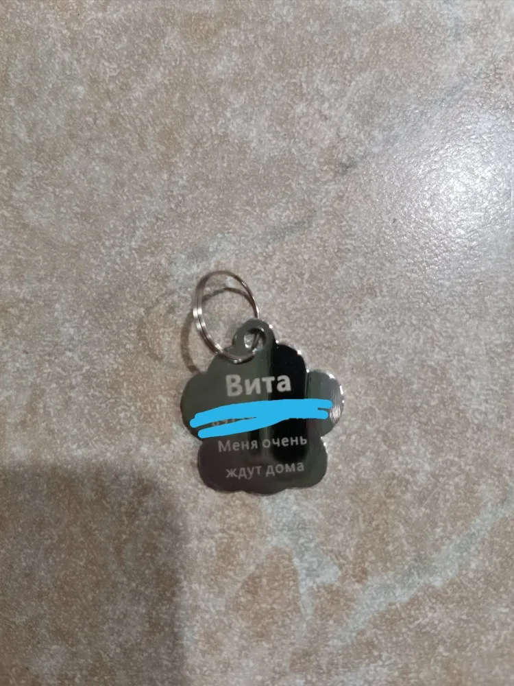 Очень симпатичный адресник,надпись чёткая,написано всё верно,единственный минус ,это хиленькое колечко,но это мелочи. Покупкой довольна.