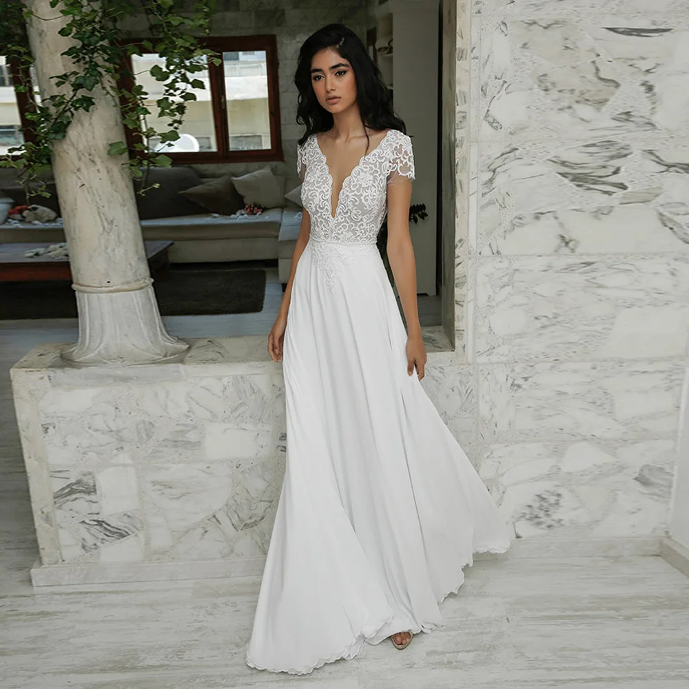 Свадебное платье в пол в стиле бохо, шифоновое кружевное платье с р...