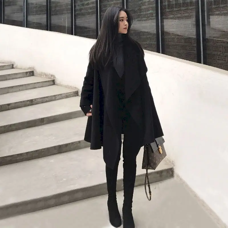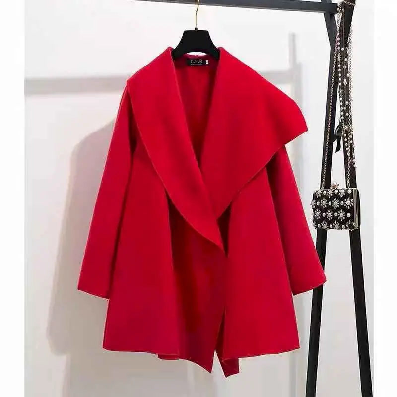 Новая женская накидка средней длины с подкладкой, женское свободное шерстяное пальто большого размера, Женская ветровка, Женская куртка-бомбер, 2022