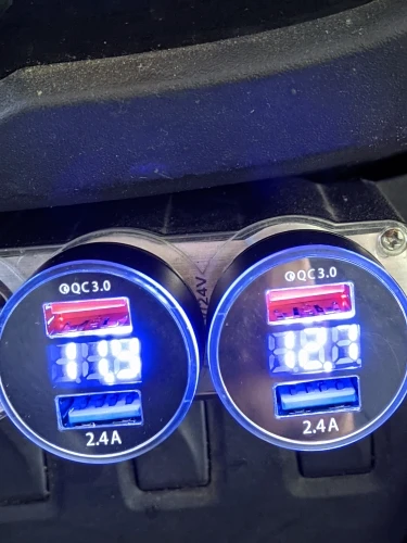 Товар дошёл быстро. В остальном полное фуфло. Табло показывает только заряд аккумулятора авто и то как видно по фото разница между двумя зарядками купленными в один день и у одного продавца почти 1 вольт (это много). Ни какой быстрой зарядки QC 3.0 тут и близко нет, там где 3.0 выдаёт максимум 1.7 ампера, на разъёме 2.4 выдаёт 0.5 ампер максимум. В общем не советую покупать.