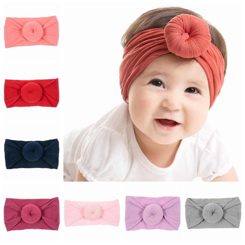 Модная 1 шт. круглая повязка на голову с бантом для маленьких девочек, эластичная широкая нейлоновая повязка на голову, Детские аксессуары для волос, подарки на день рождения