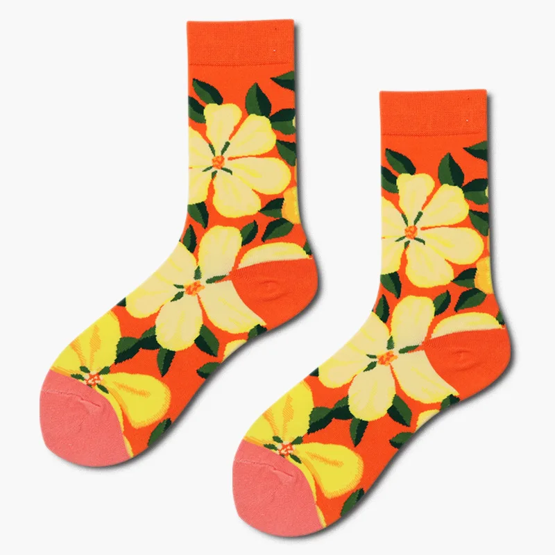Модные зимние новые стильные брендовые носки, веселые мужские и женские носки унисекс, хлопковые парные смешные носки, носки с контрастным рисунком цветов и птиц