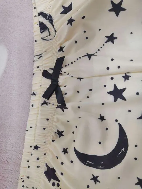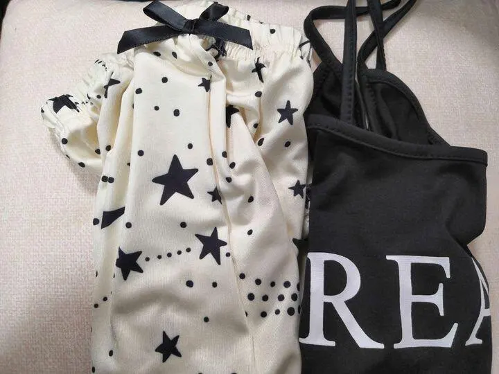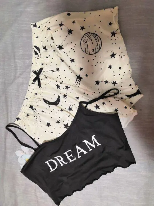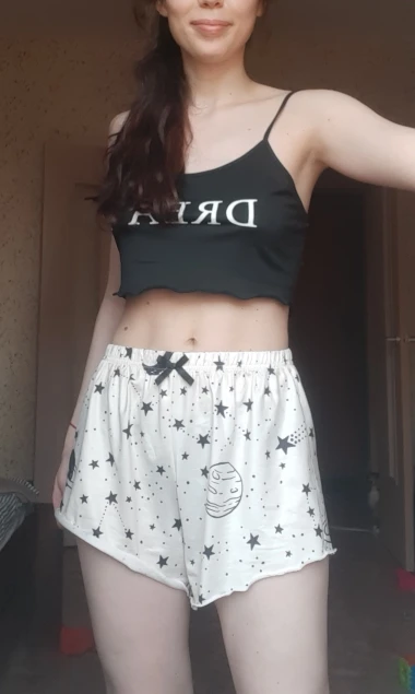 Симпатичная пижамка из приятной, мягкой ткани. Это не хлопок, но ткань для тела приятна. Лямки на майке регулируются. Мне понравилось цвет и качество. Даже если не спать в ней, то по дому в жару очень комфортно в ней. Посылка дошла быстро, отслеживалась.