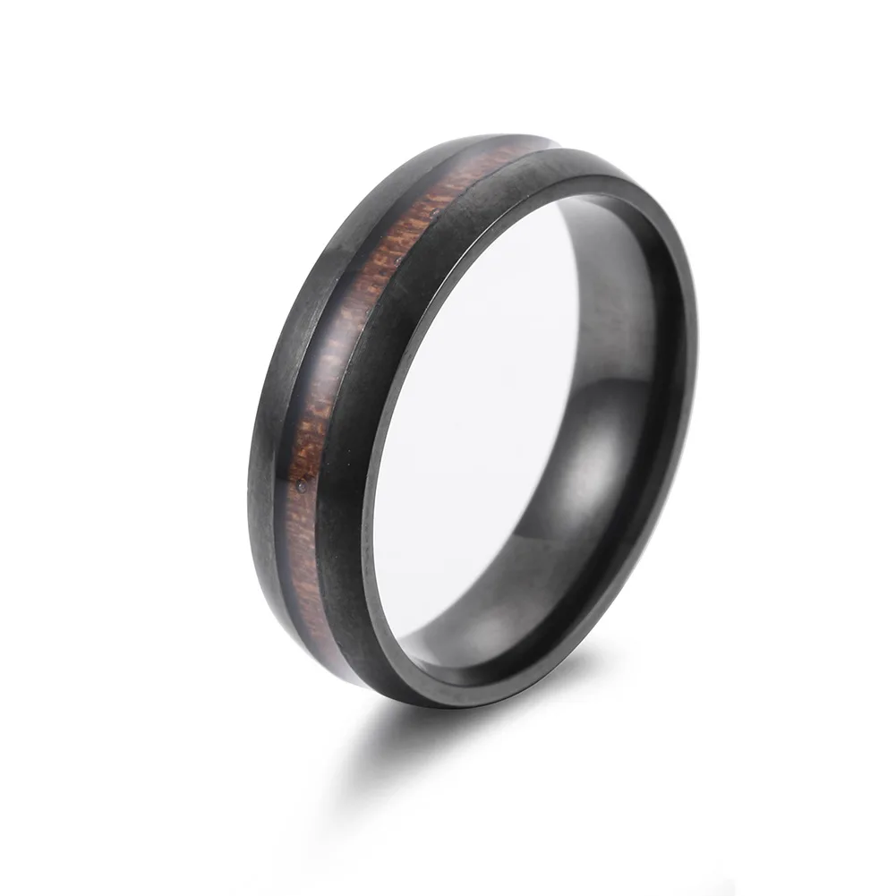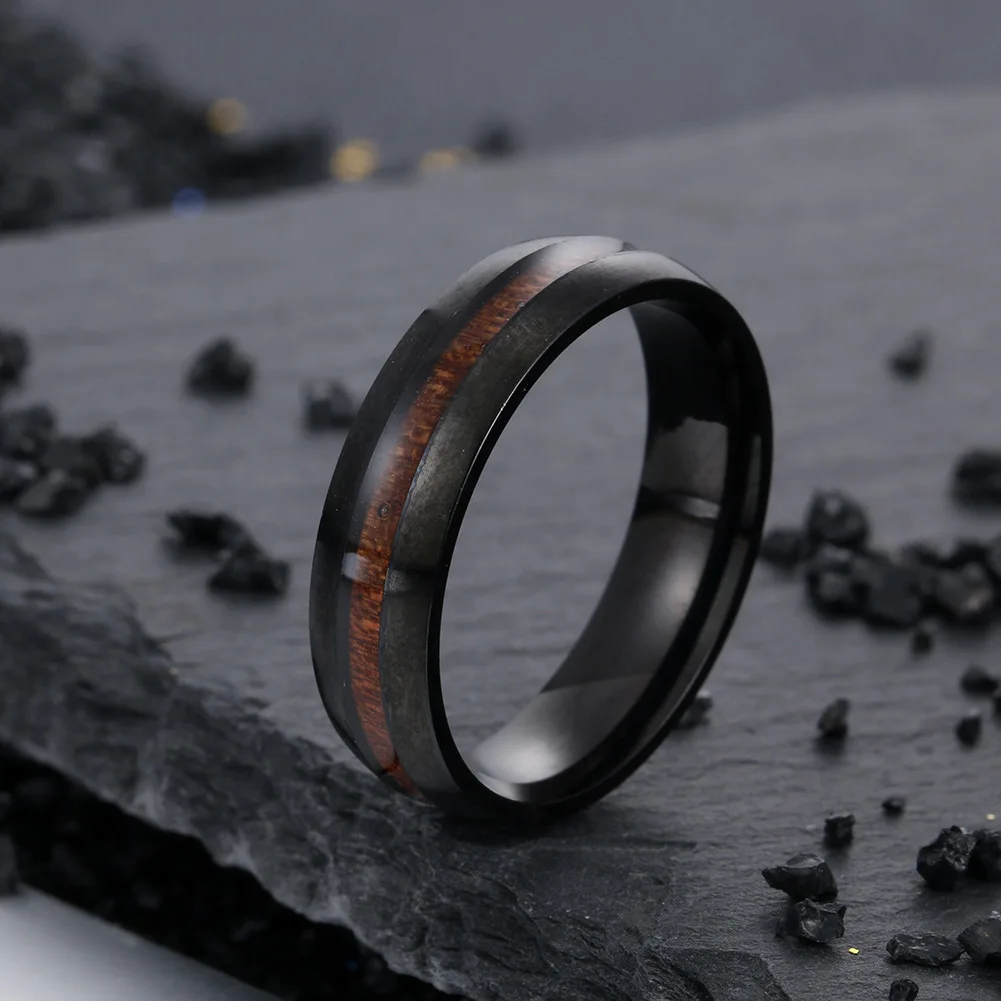 Мужское кольцо из черной нержавеющей стали 6 мм, винтажное обручальное кольцо с Т-образным кольцом koa, деревянная инкрустация, удобная посадка