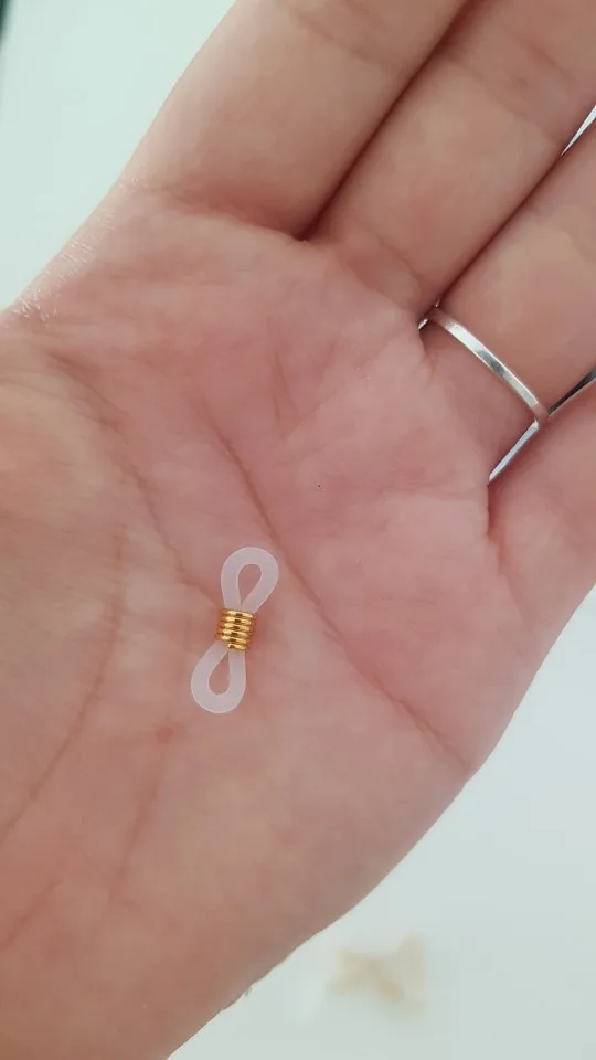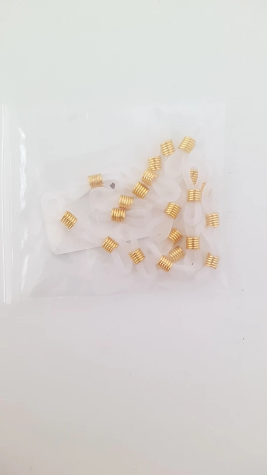 все отлично! количество не пересчитывала, но лежит много штучек в пакете, уже сделала цепочку для очков, все отлично село на очки. металлическая часть на фурнитуре двигается по силикону, чтобы регулировать диаметр ушек.