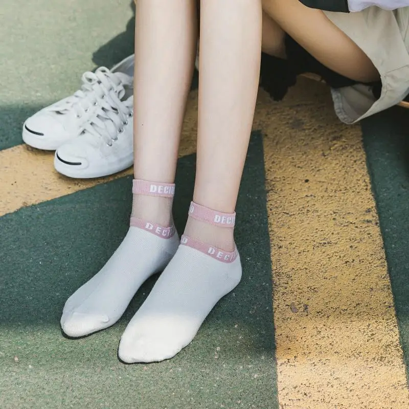 Носки женские короткие, хб, с буквенным принтом, 1 пара