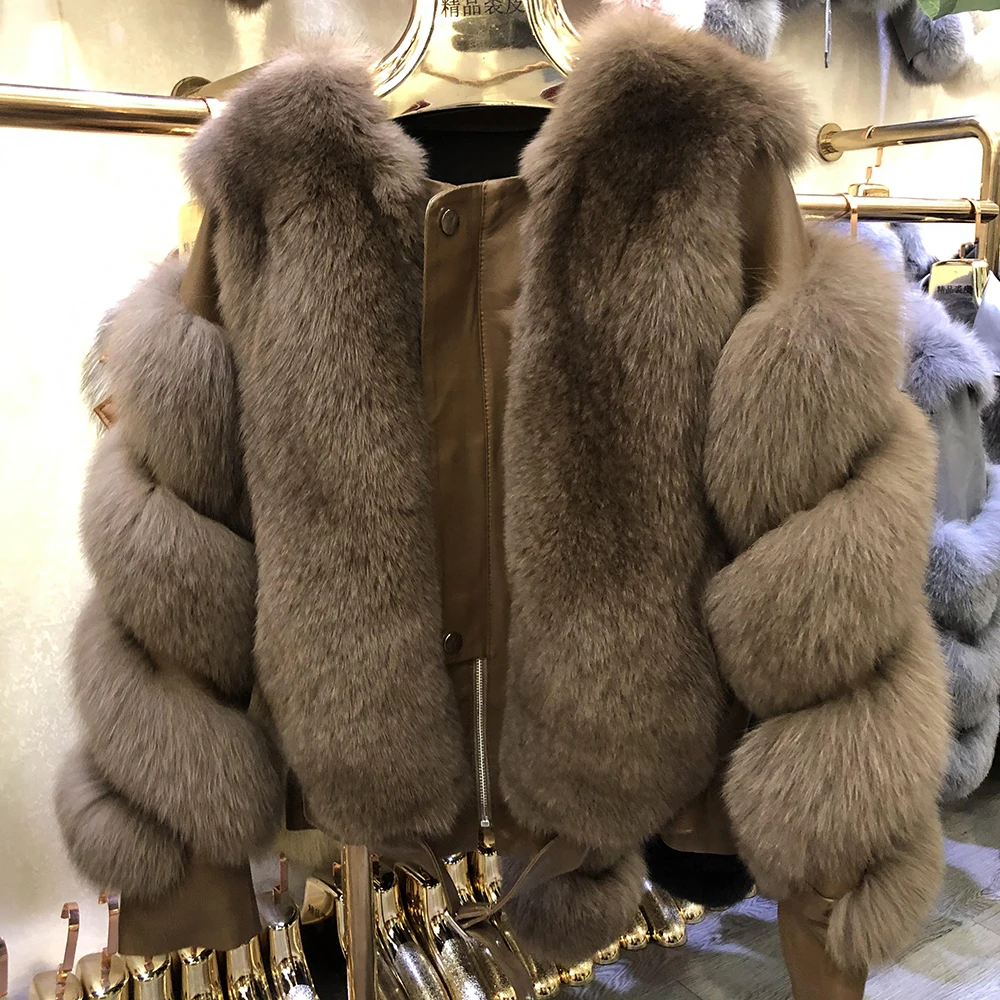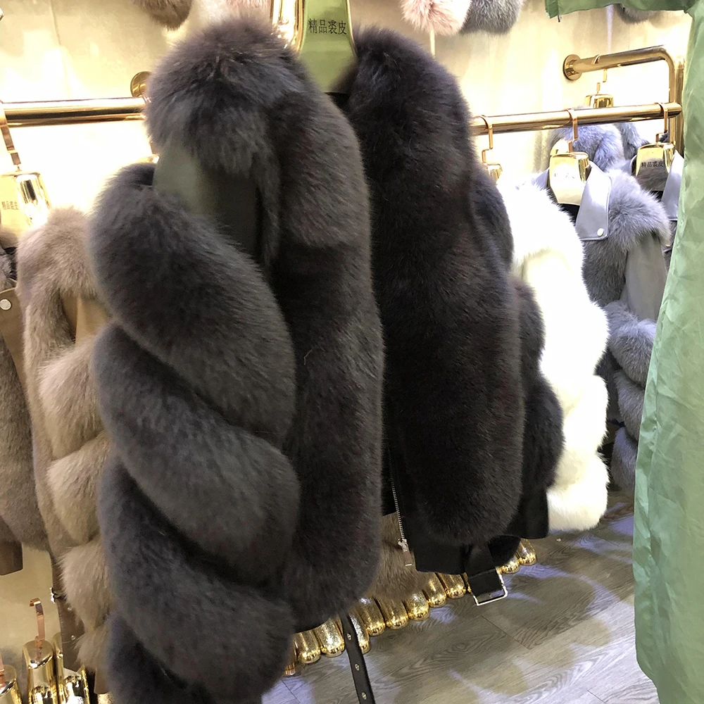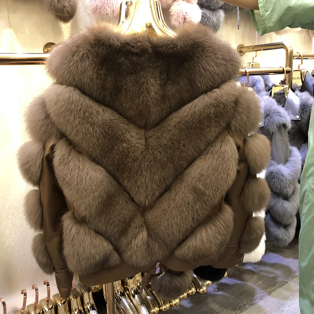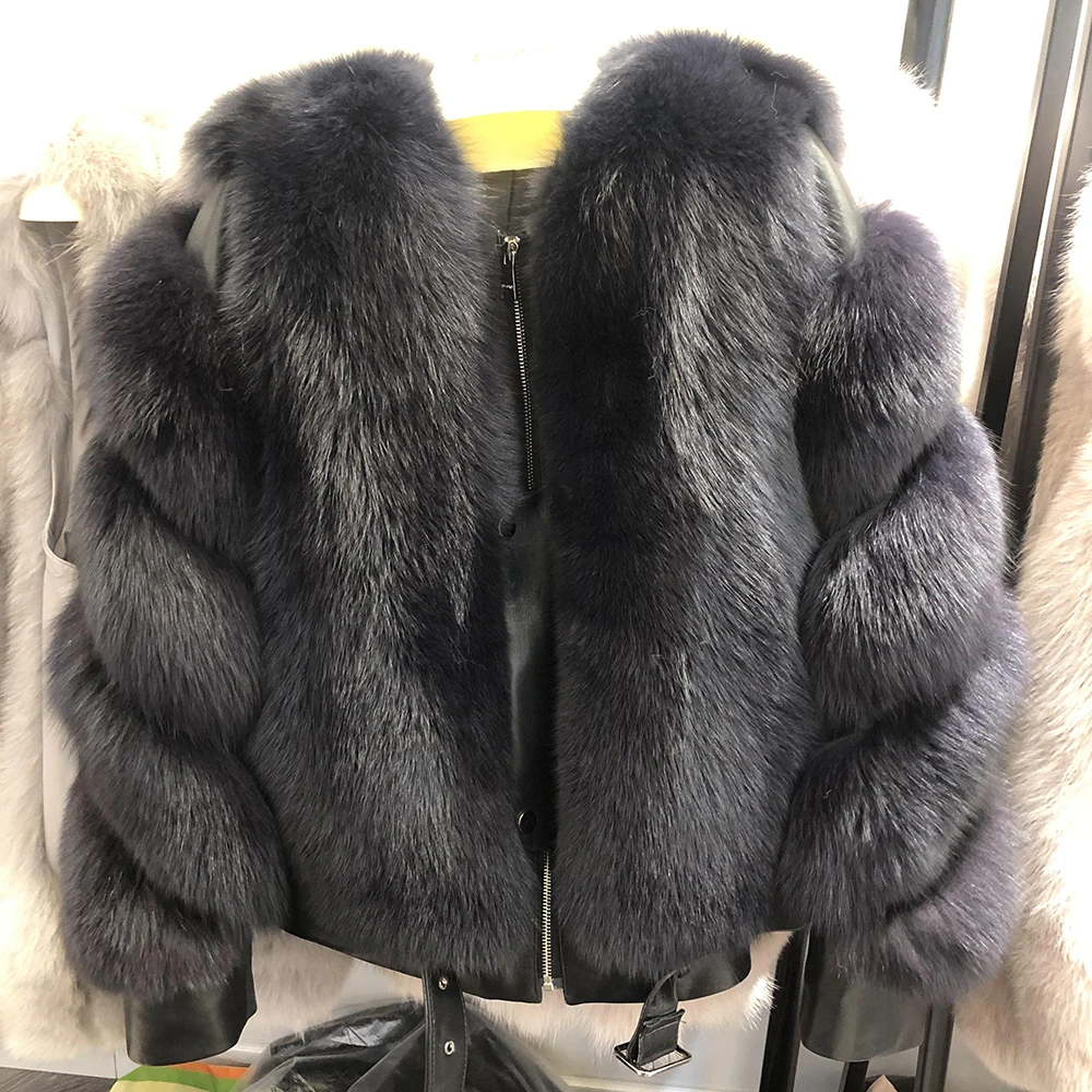 Зимняя модная теплая куртка из натурального Лисьего меха с V-образным вырезом, кожаные короткие пальто из натуральной кожи на молнии с прострочкой, теплые женские пальто