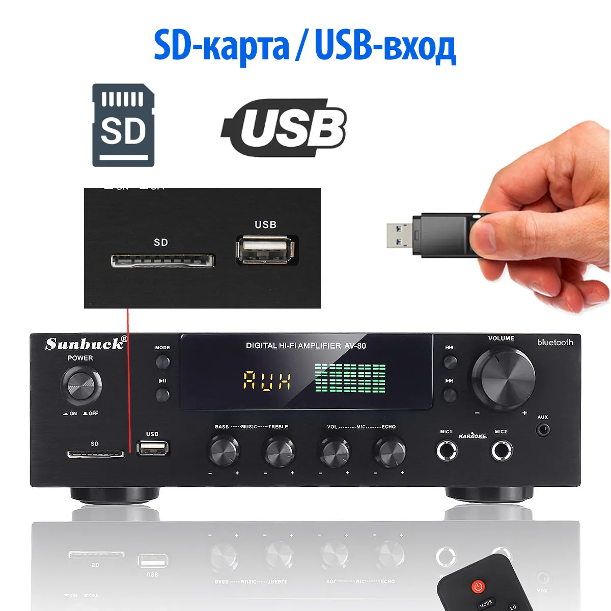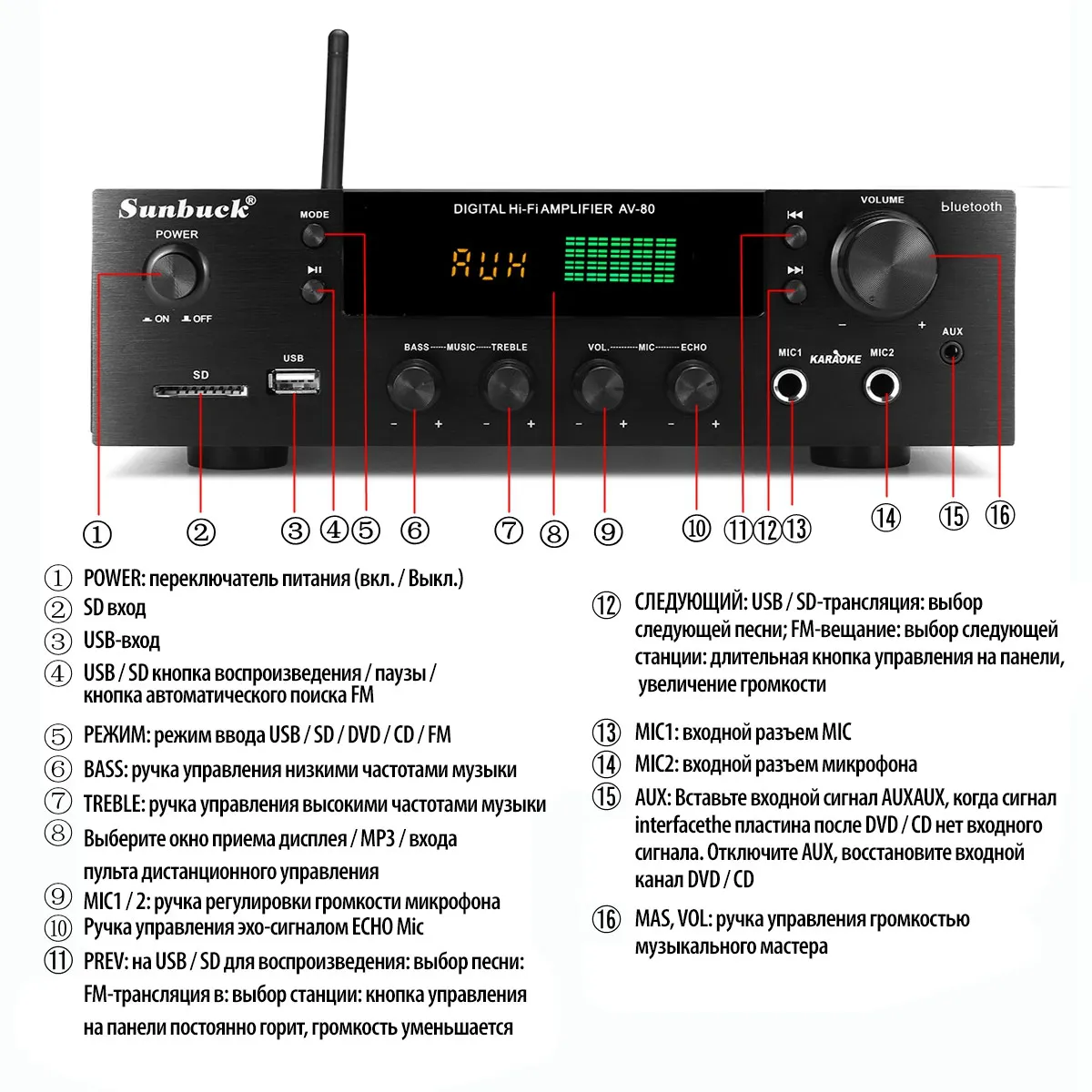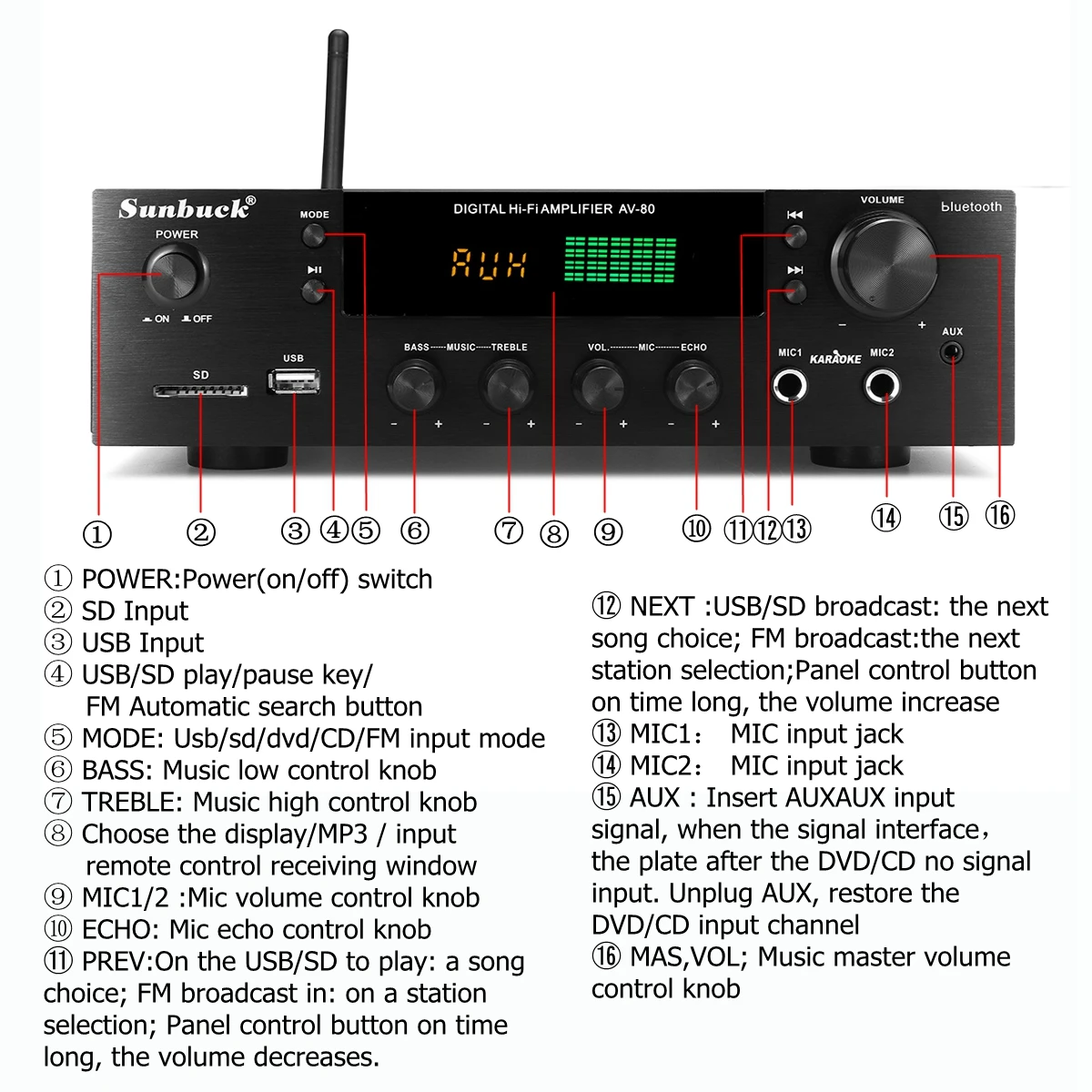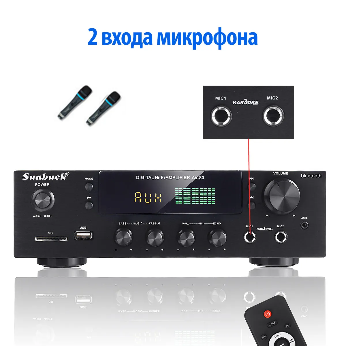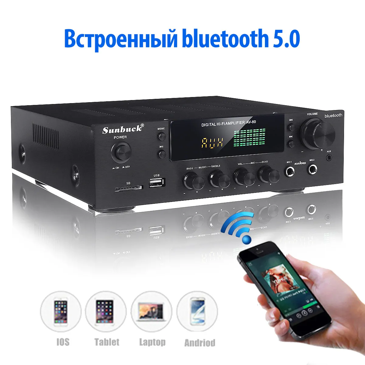 Усилители мощности SUNBUCK для домашнего кинотеатра, 2000 Вт, Hi-Fi, bluetooth, стерео, аудио, караоке, FM-приемник, USB, SD, 2 входа для микрофона
