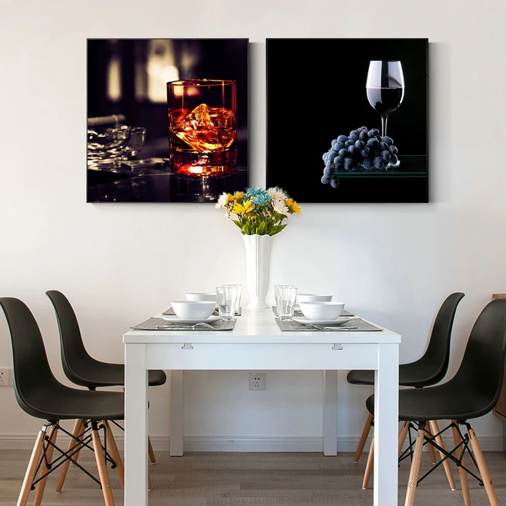 Современные настенные картины на холсте для кухни, комнаты, настенные плакаты и принты с изображением сигар и виски, настенные картины с красным вином, Декор