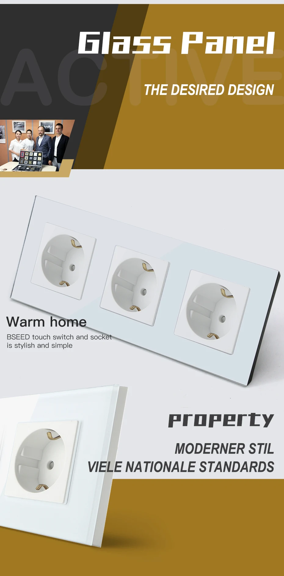 BSEED стандарт ЕС Тройная стенная розетка Хрустальная стеклянная панельЭлектрическая розетка 4 цвета белый черного и золотого цвета серый 110 в 250 для дома