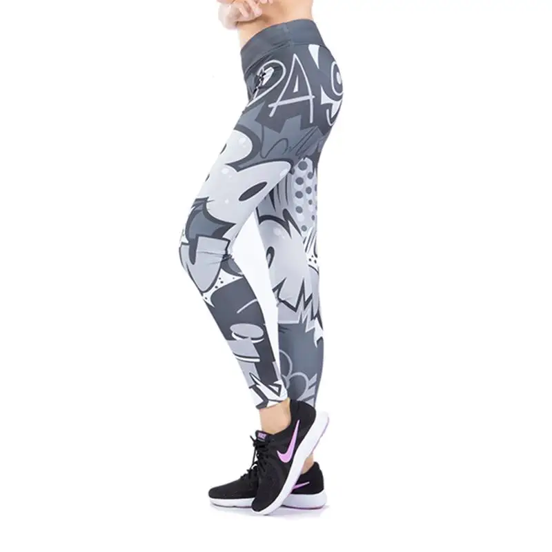 Новые леггинсы с принтом комических слов, эластичные леггинсы с высокой талией, дышащие обтягивающие штаны