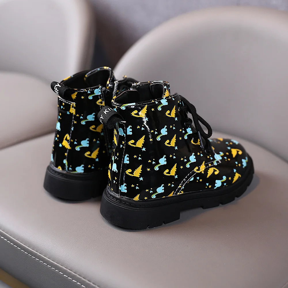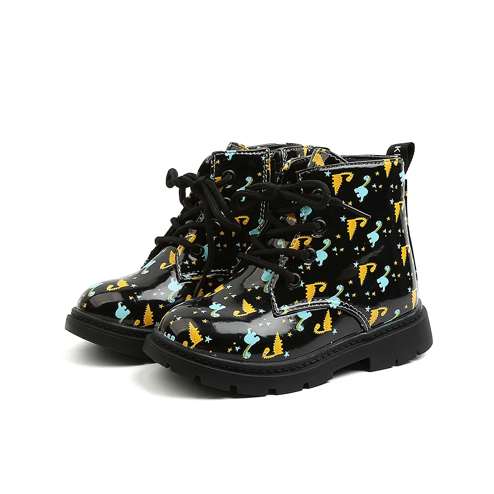 Детские Ботинки Martin с принтом, короткие ботинки с динозавром для мальчиков и девочек, модные тонкие ботинки с цветами, детская обувь с героями мультфильмов на осень и весну