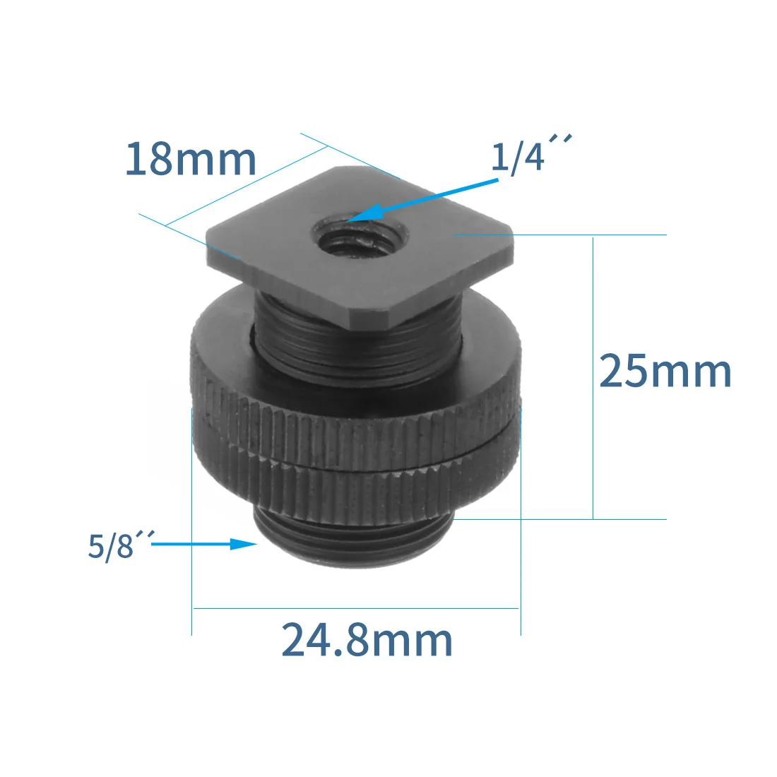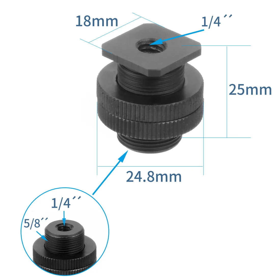 Тип CКрепление адаптера типа горячий башмак с наружной резьбой 5/8 дюйма на внутреннюю резьбу 1/4 дюйма для микрофона (2 варианта опционально, версия B с дополнительным отверстием для резьбы 1/4 дюйма)