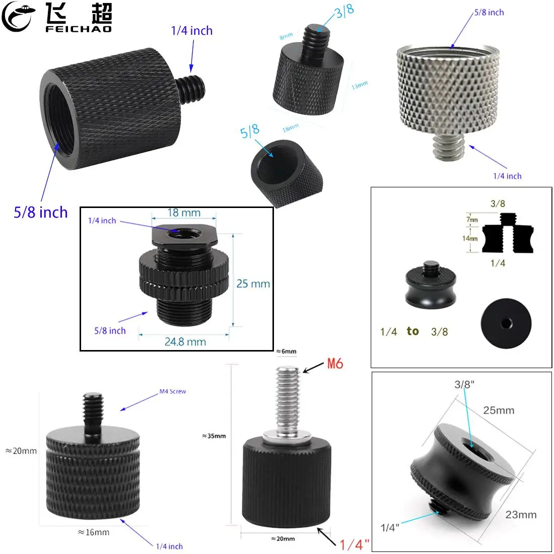 * Клиент должен предоставить сертификат товарного знака/авторизацию бренда или Примечание в заказе:«Товары с индивидуальным логотипом, которые я запрашивал, предназначены только для личного использования, я обещаю не делать никаких выгодных продаж».В случае нарушения соответствующих положений покупатель несет соответствующую ответственность, которая не имеет ничего общего с продавцом!FEICHAO 1x 5/8 "внутренняя резьба до 1/4" 3/8 "наружная резьба M4 M6 винтовой адаптер Холодный башмак для микрофона стойка штатив пластина Кронштейн для вспышки конвертер для микрофона