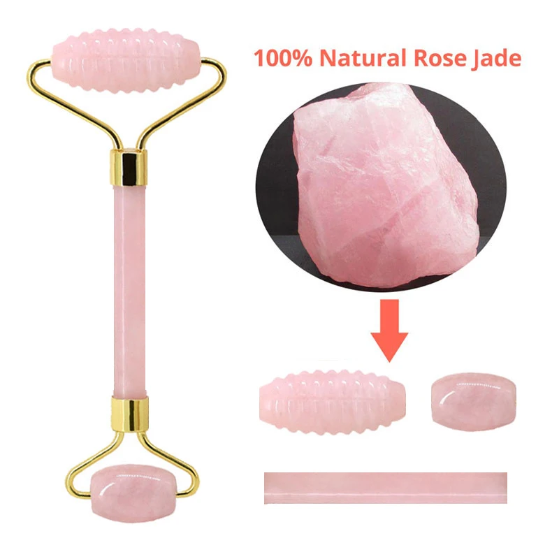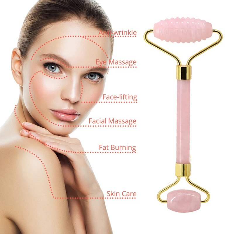 Натуральный розовый КВАРЦЕВЫЙ ролик для массажа лица гуашь камень ролик для лица Массажер гуашь кварцевый ролик для лица красота уход за кожей Инструмент