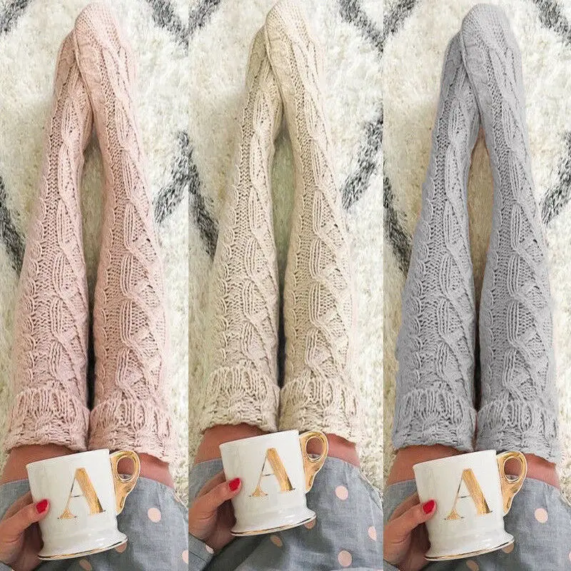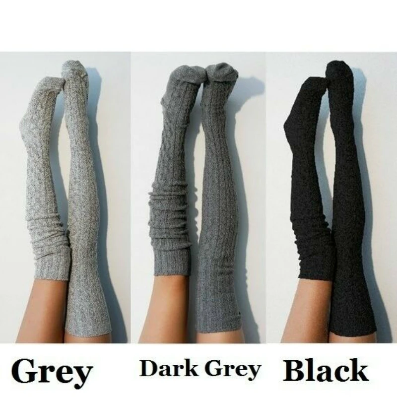 Вязаные чулки для осени и зимы, теплые однотонные женские носки выш...
