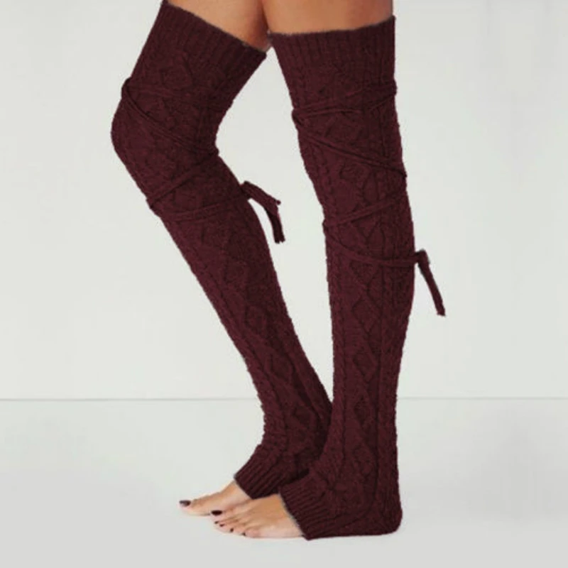 Женские чулки, пикантные трикотажные однотонные мягкие чулки на шнуровке, осенне-зимние теплые чулки выше колена