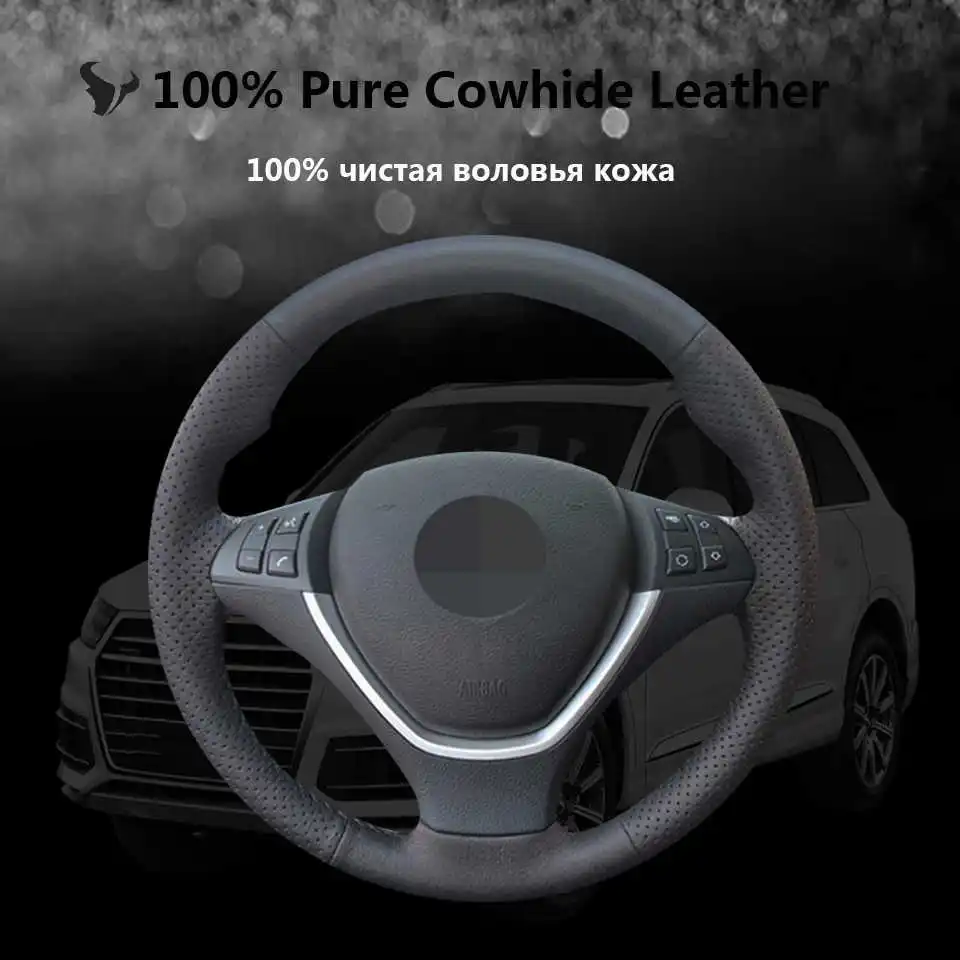 Сшитый вручную черный чехол рулевого колеса автомобиля из натуральной кожи для BMW X6 E71 2008 2009 2010 2012 2013 2014 E70 X5 2008-2012 2013