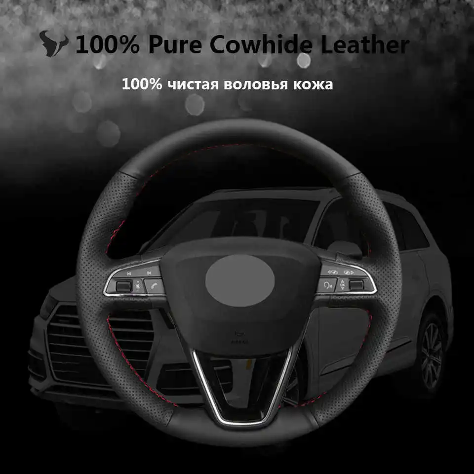 Черный чехол на руль из натуральной кожи для seat ibiza leon 5f mk3 2013-2019 ibiza 6j tarraco arona ateca