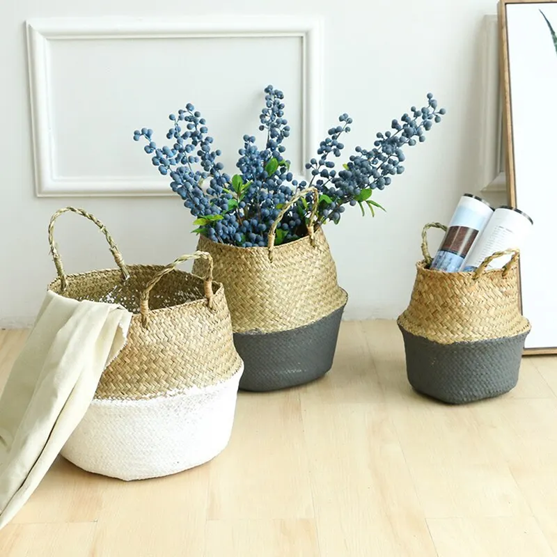 Бамбуковые корзины для хранения ручной работы, складные соломенные Лоскутные плетеные Ротанговые водоросли, живот, садовый цветочный горшок, корзина для цветов
