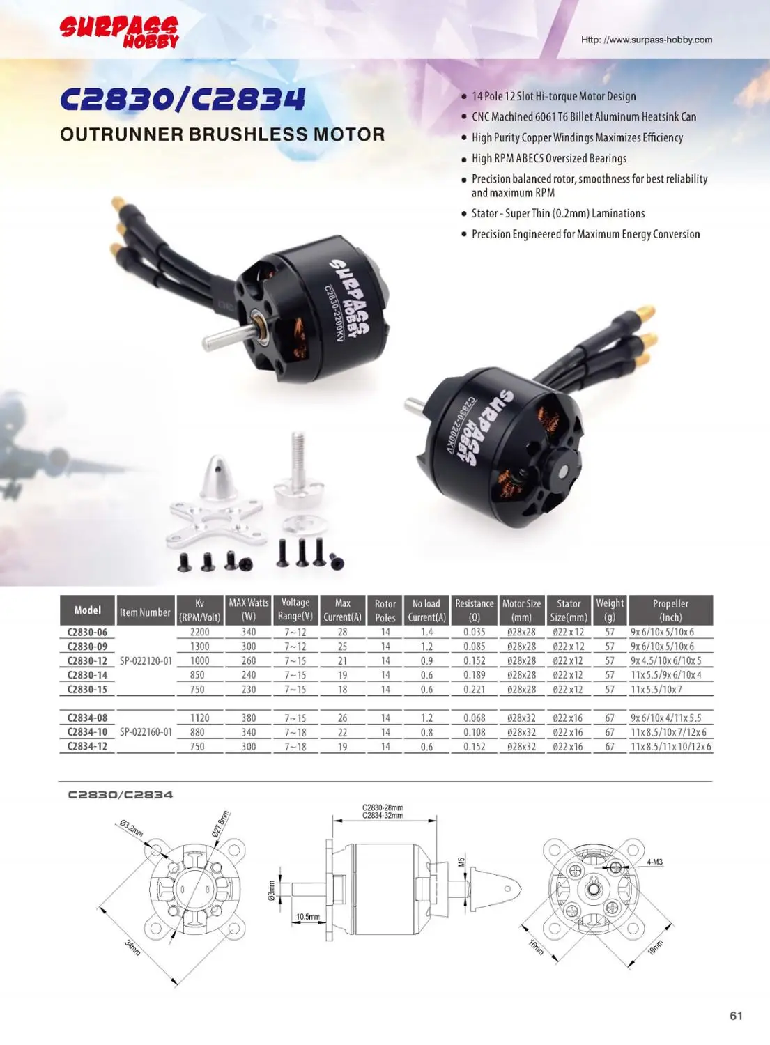 SURPASS HOBBY C2822 C2826 бесщеточный мотор с внешним ротором 14 по...