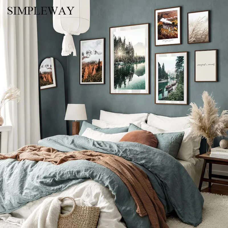 Холст с изображением горного озера, лодки, скандинавский лес, солнце, природный пейзаж, картина, Скандинавская картина, украшение для комнаты