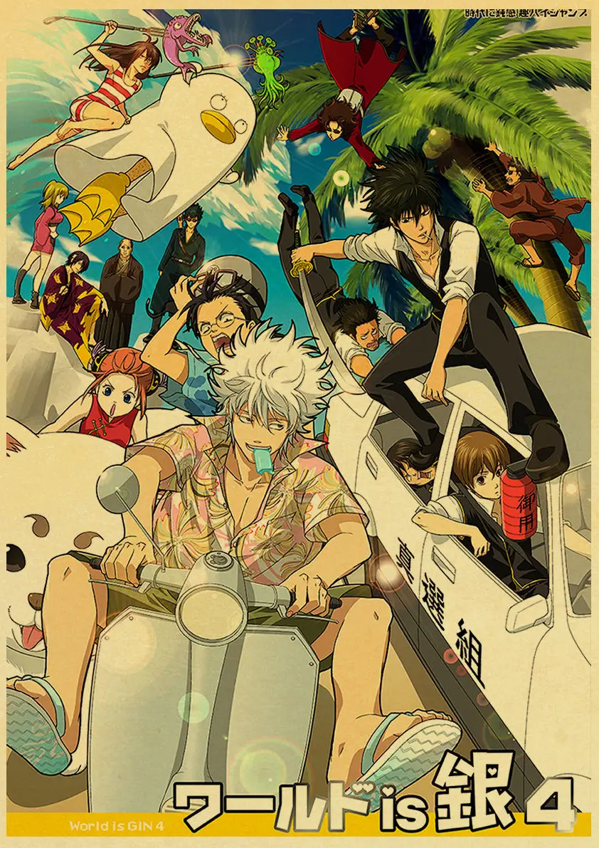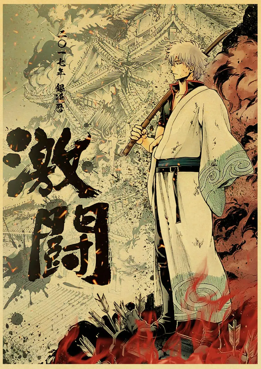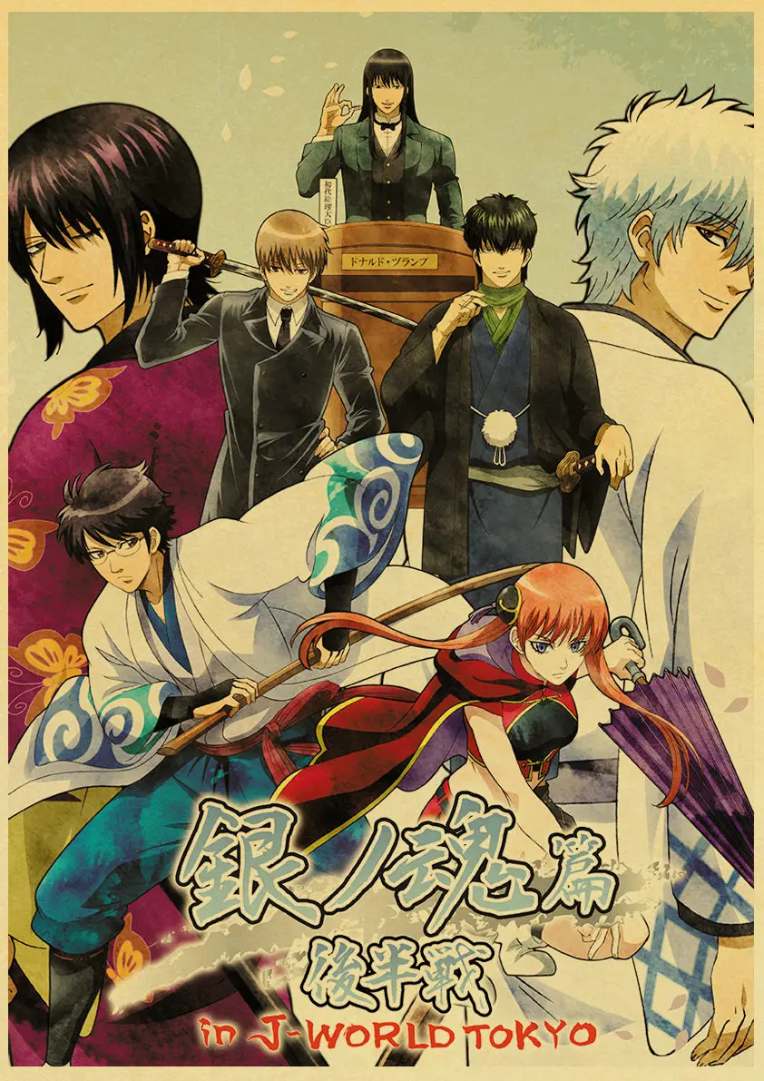 Винтажные плакаты GINTAMA, настенные художественные Ретро картины для домашнего декора комнаты, настенные наклейки без рамки с принтами