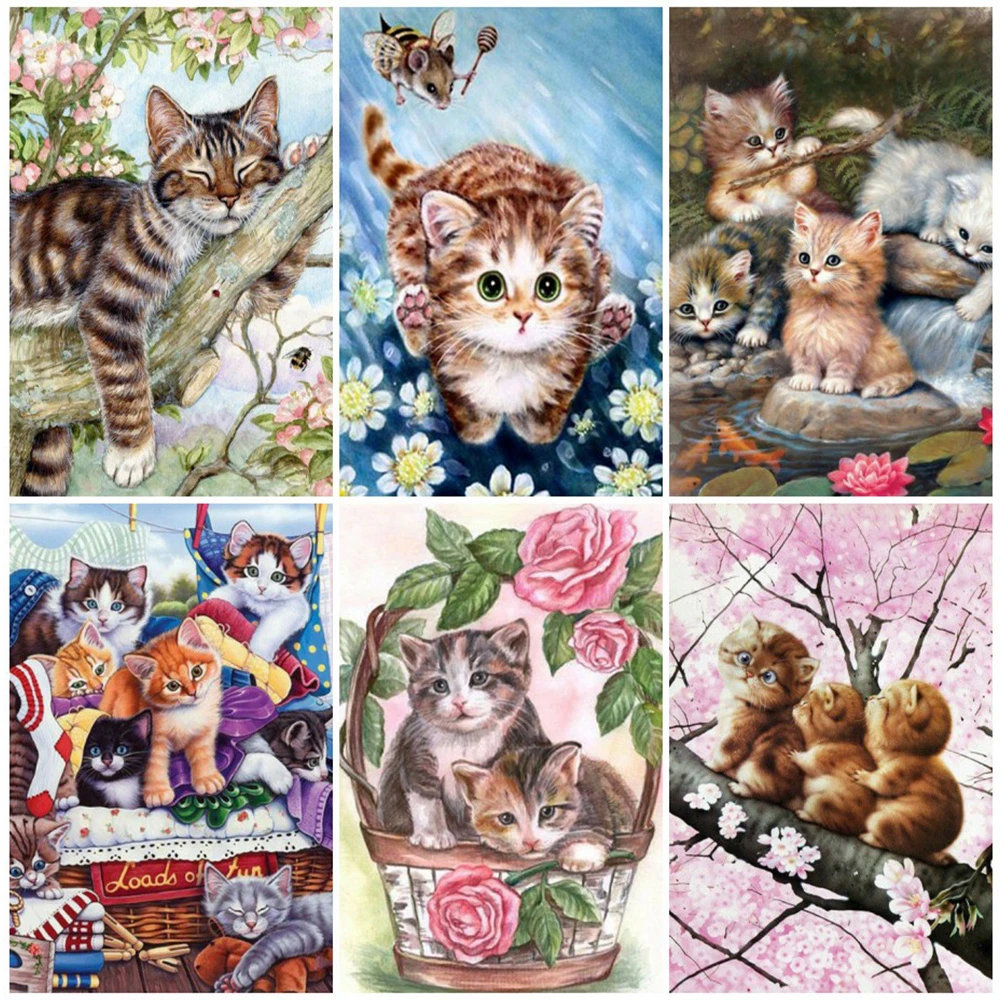 Алмазная мозаика EverShine, квадратные Стразы с изображением кота, искусство бриллиантовый рисунок Рождество, декоративная вышивка бисером, животное, домашний декор