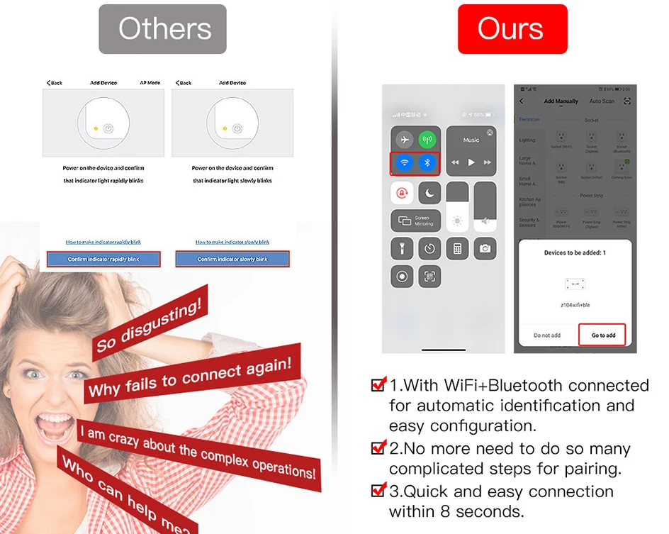 Новый режим очистки овощей с простой работойС WiFi + Bluetooth подключен для автоматической идентификации и простой конфигурацииБольше не нужно делать так много сложных шагов при сопряженииБыстрое и легкое подключение в течение 8 секунд