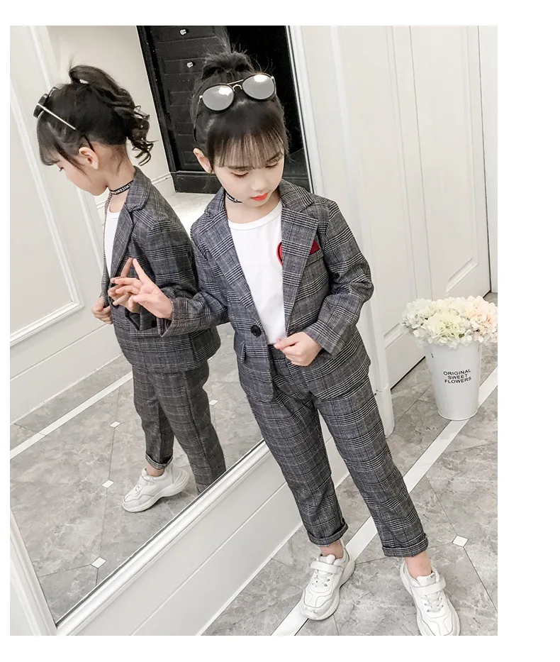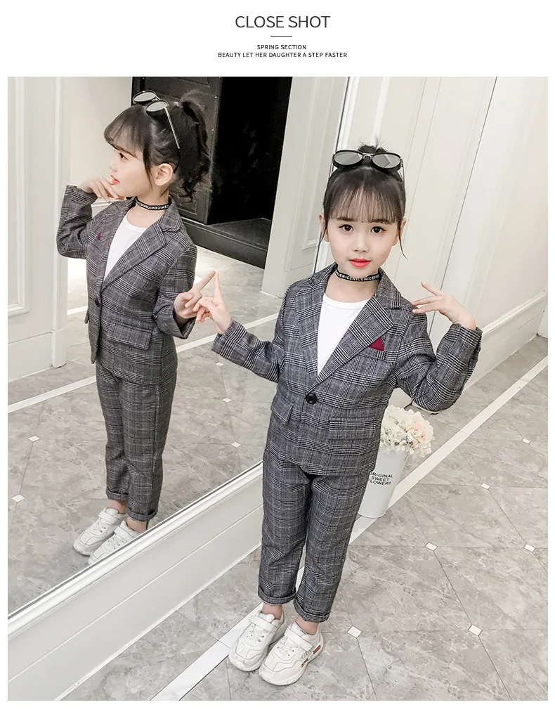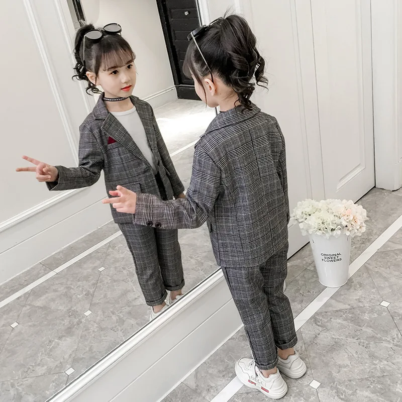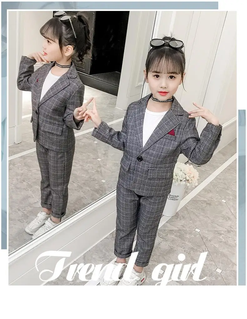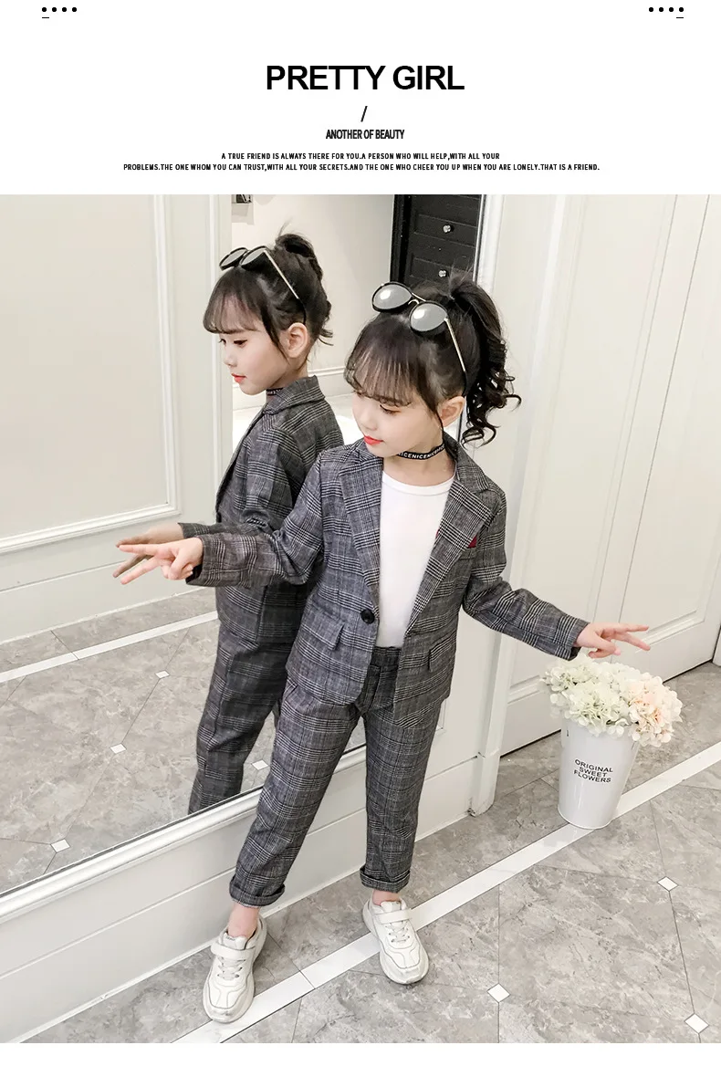 2020 осенний костюм в клетку для девочек-подростков, куртка и штаны, школьный спортивный костюм из 2 предметов, одежда для девочек, комплект одежды для детей 8-12 лет