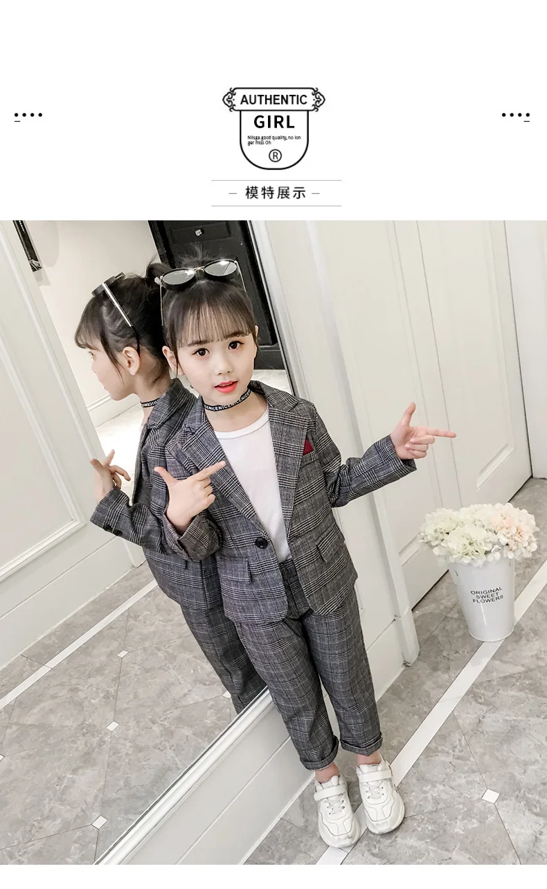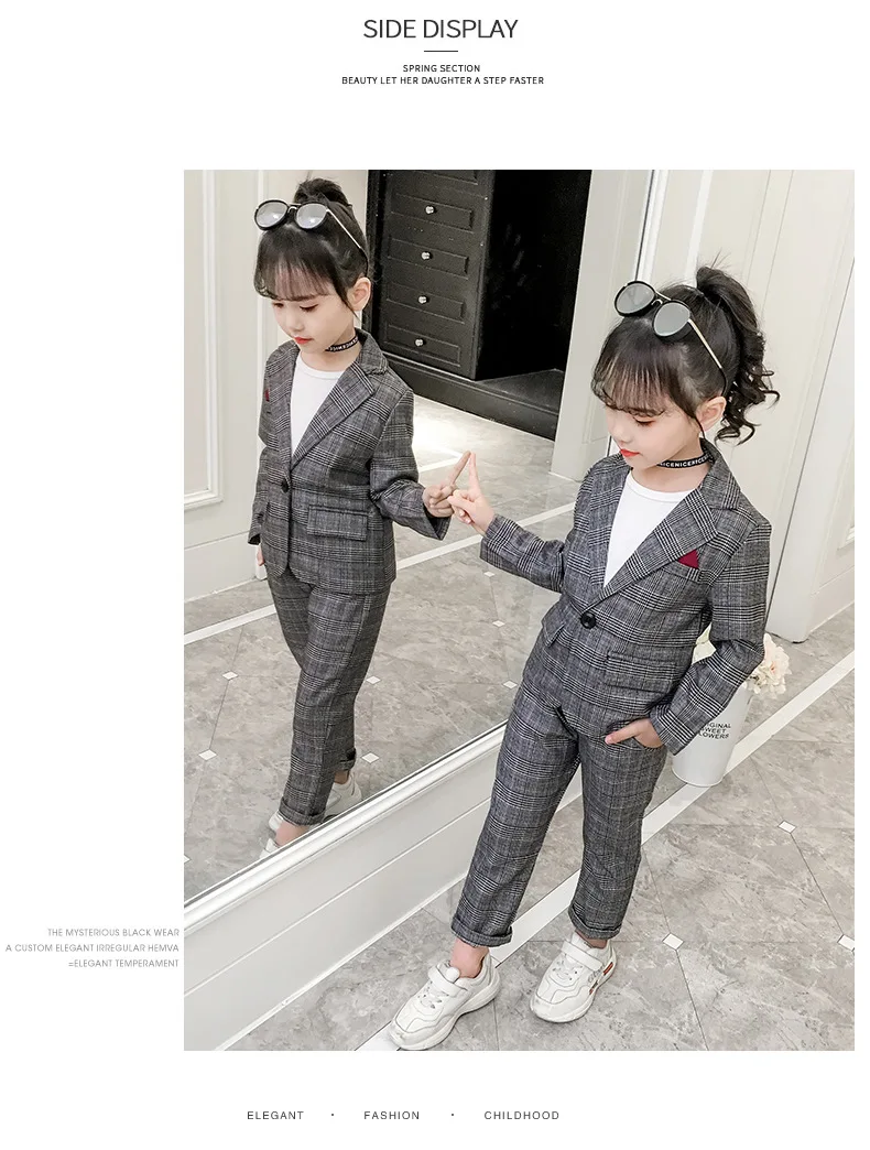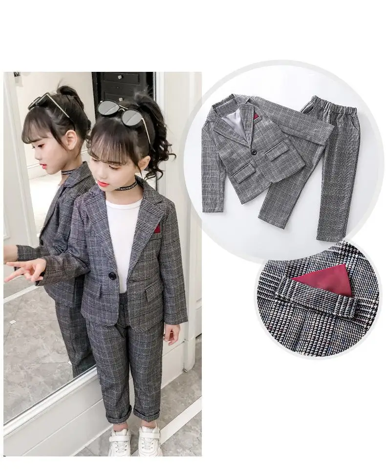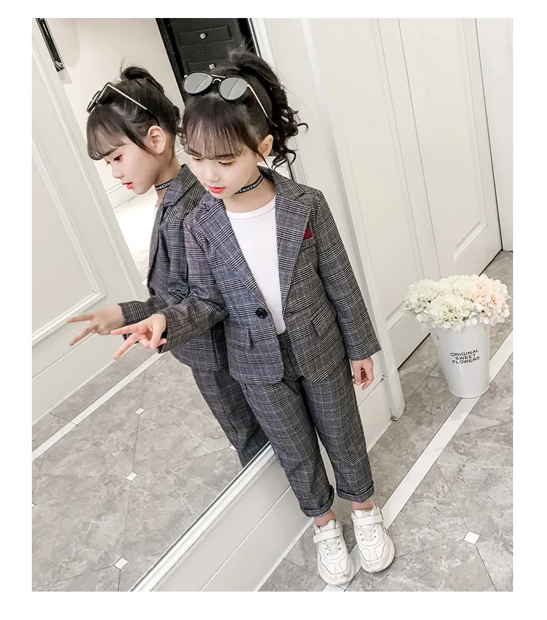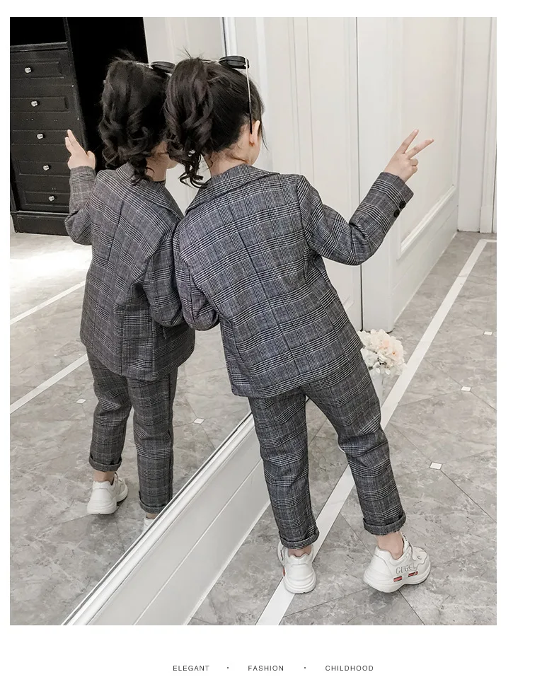2020 осенний костюм в клетку для девочек-подростков, куртка и штаны, школьный спортивный костюм из 2 предметов, одежда для девочек, комплект одежды для детей 8-12 лет