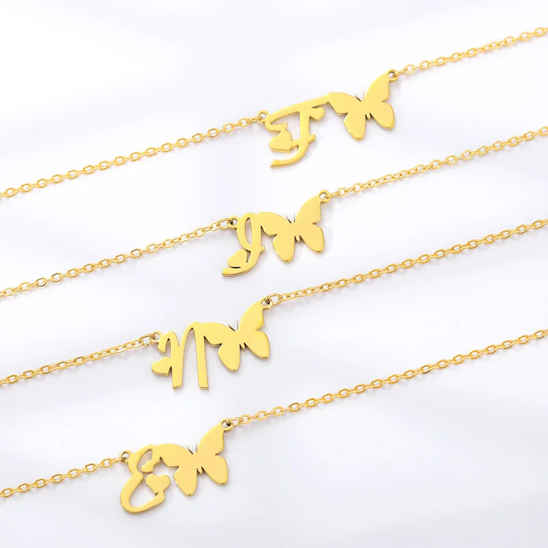 Цепочка Женская, из нержавеющей стали, с буквами бабочек, A-Z, ожер...